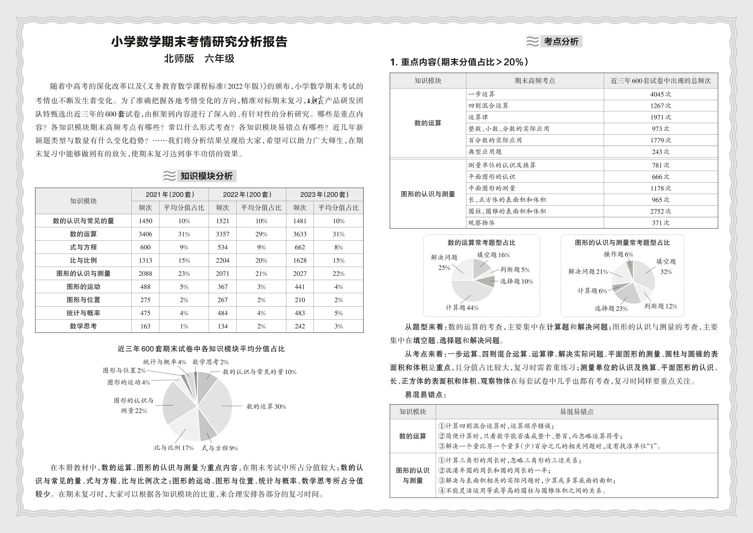 小学数学北师版六年级期末考情研究分析报告(2024春)