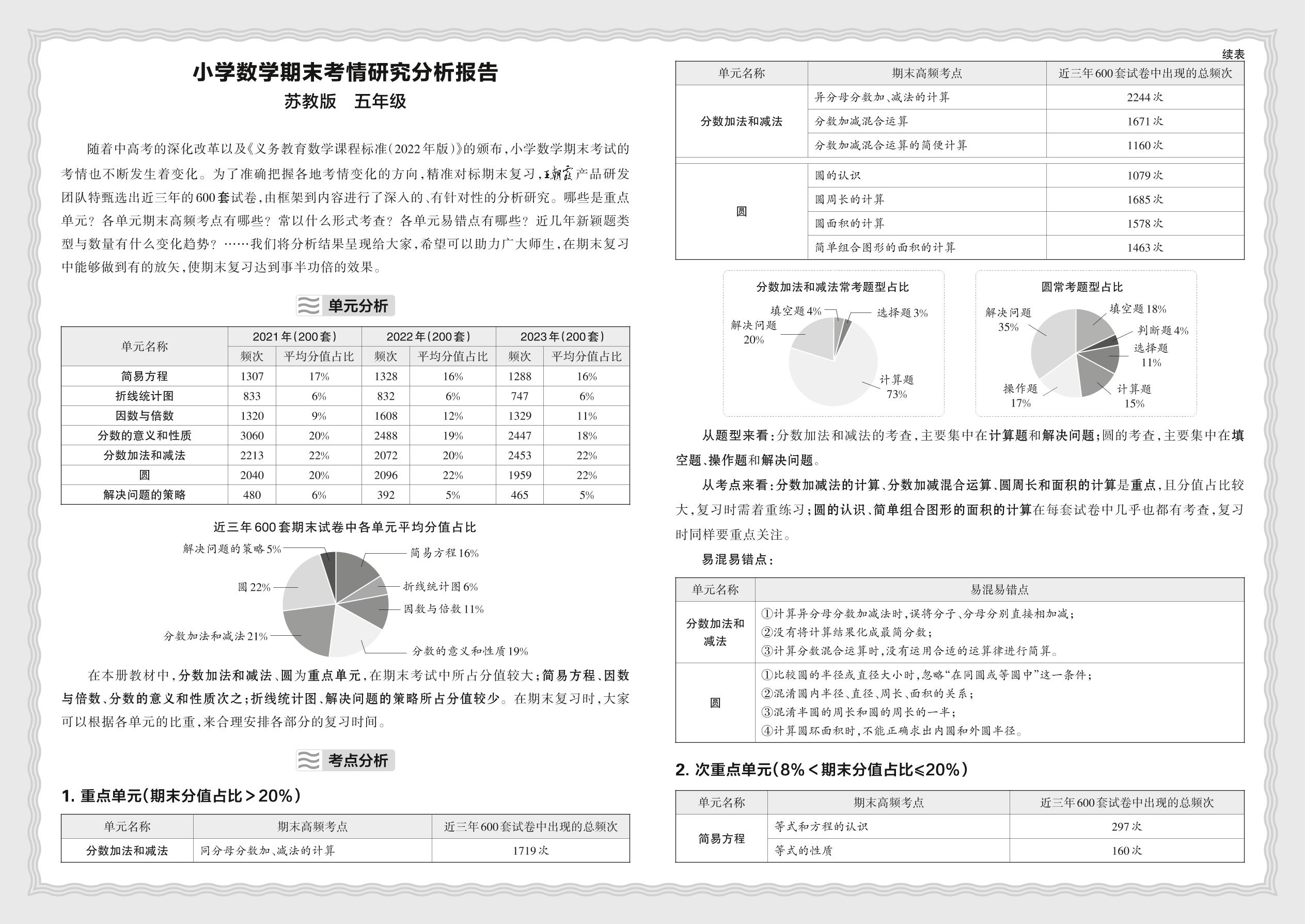 小学数学苏教版五年级期末考情研究分析报告(2024春)