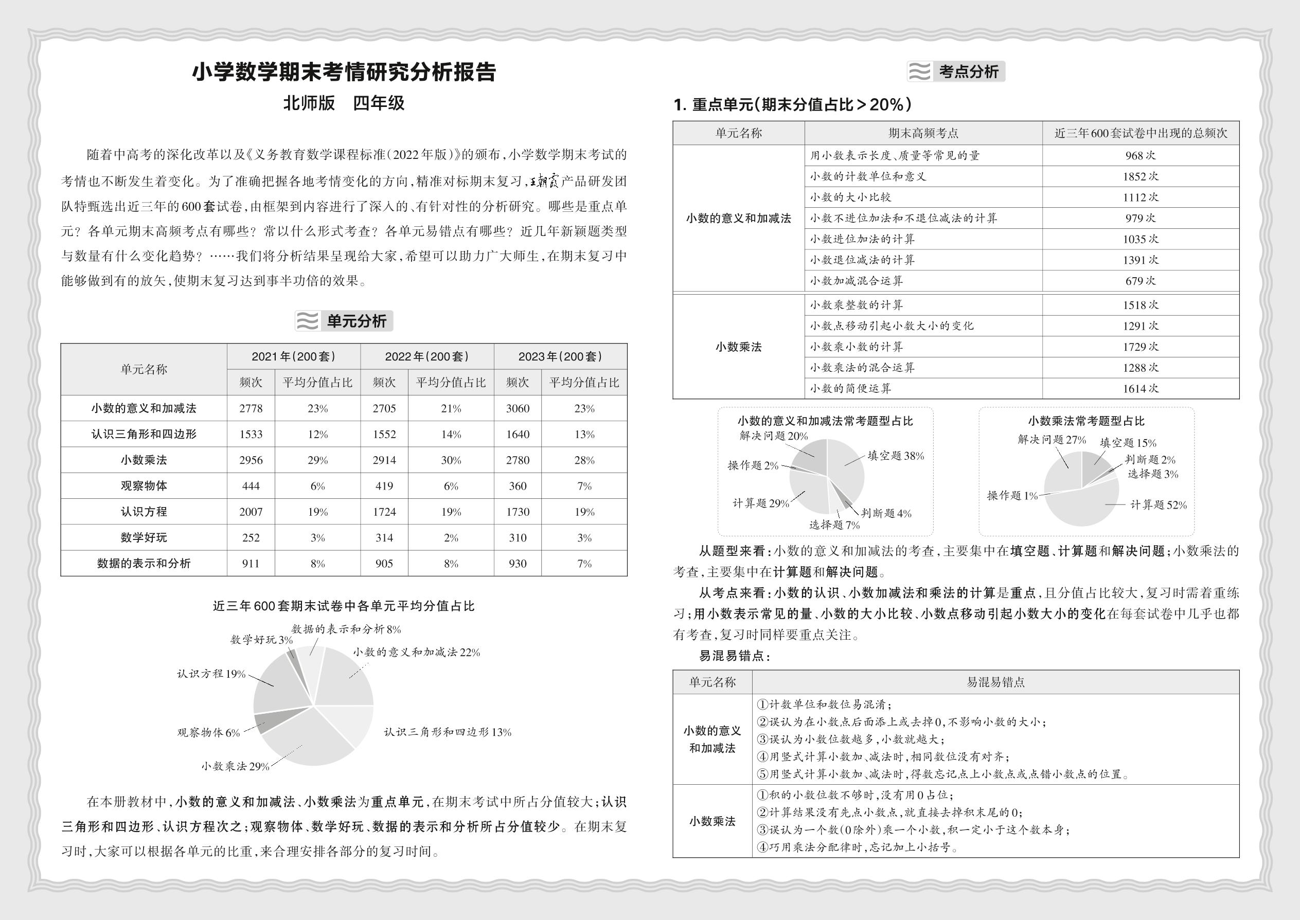 小学数学北师版四年级期末考情研究分析报告(2024春)