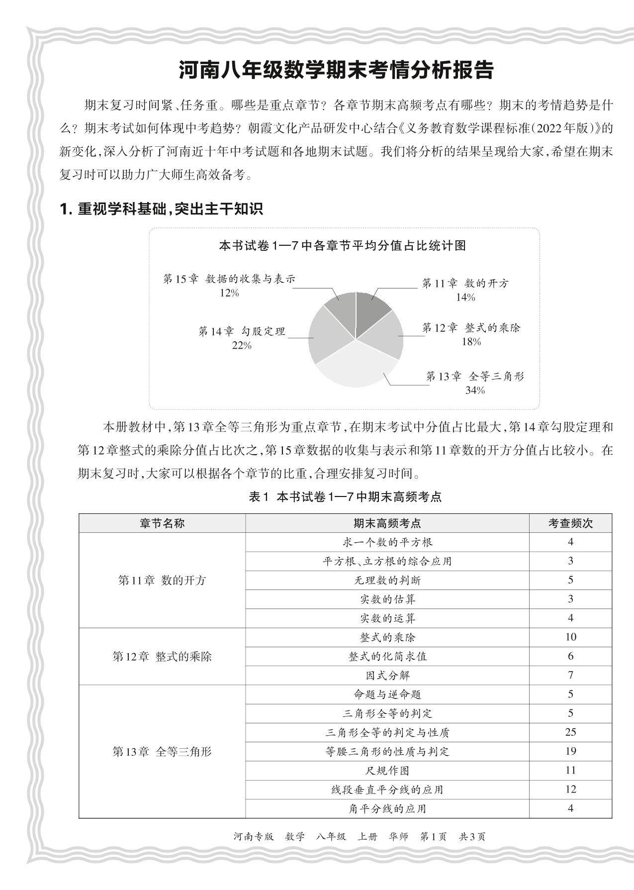 初中数学华师版八年级期末考情分析报告(2023秋河南)