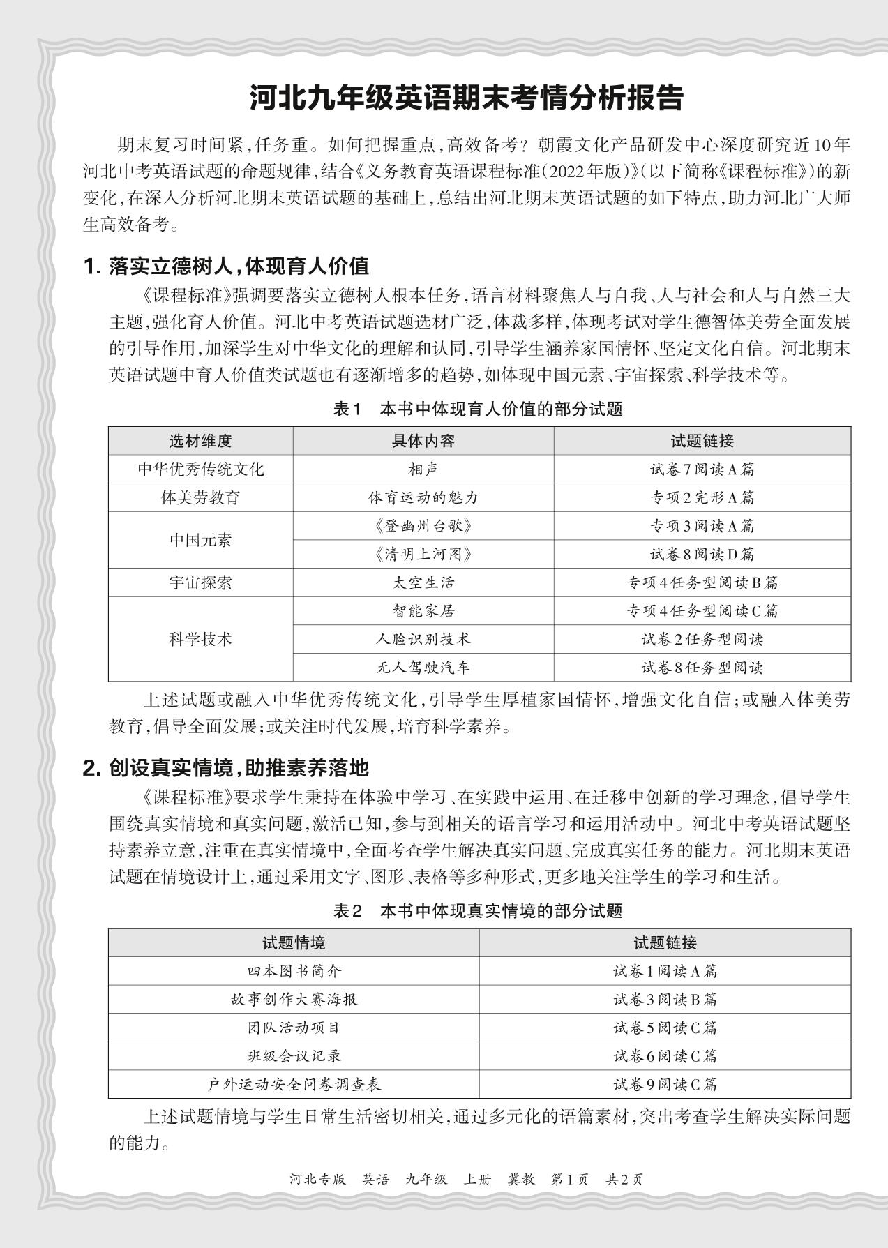 初中英语冀教版九年级期末考情分析报告(2023秋河北)