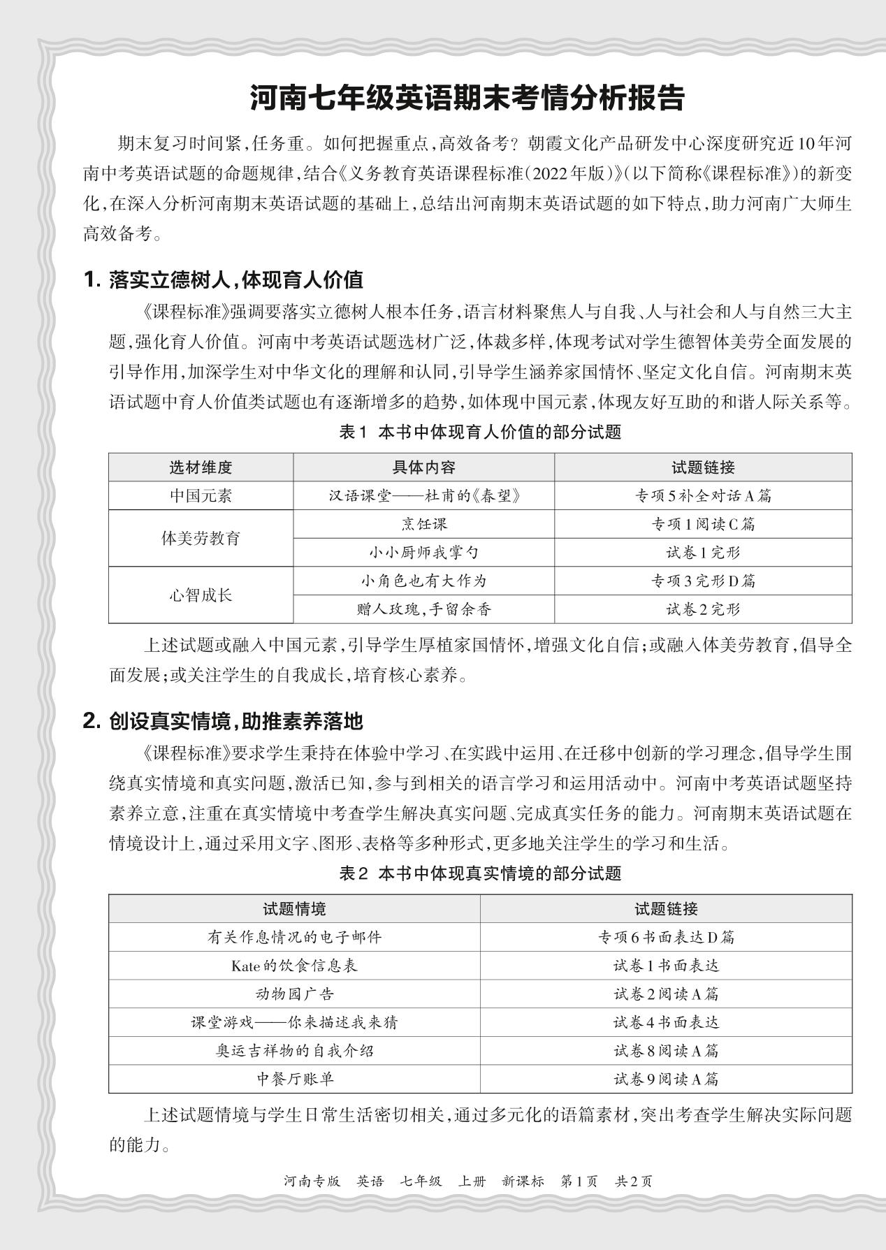 初中英语新课标版七年级期末考情分析报告(2023秋河南)