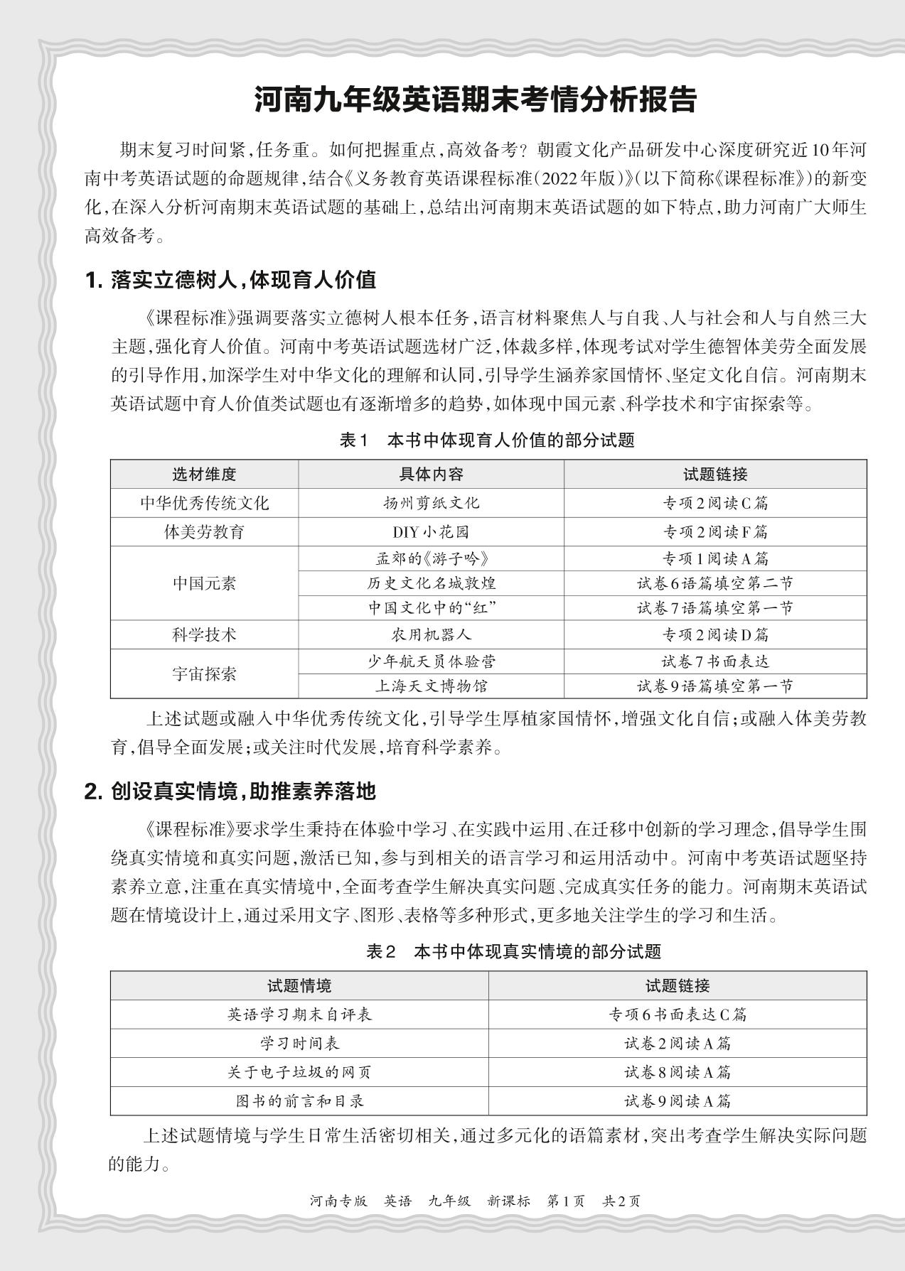 初中英语新课标版九年级期末考情分析报告(2023秋河南)
