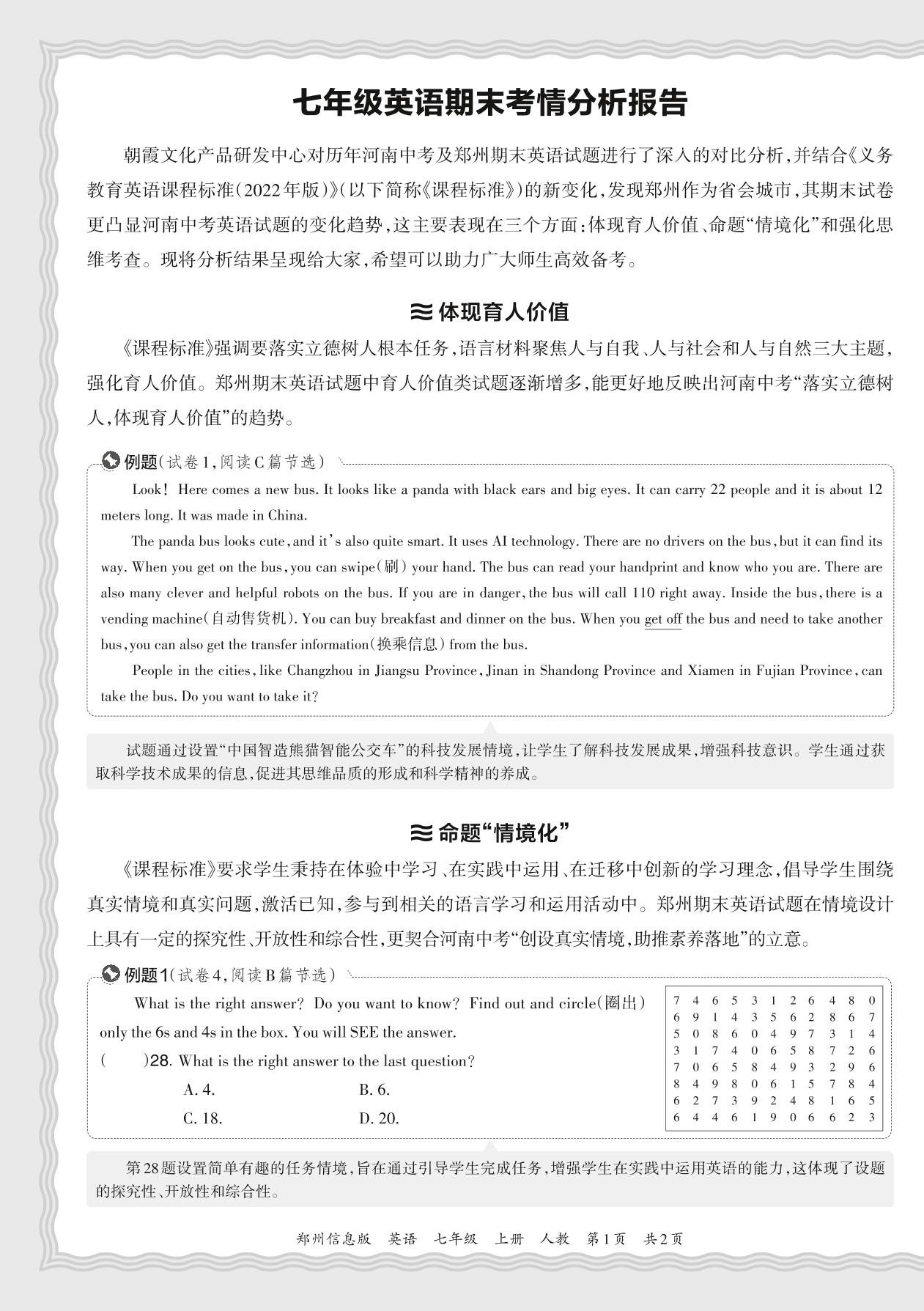 初中英语人教版七年级期末考情分析报告(2023秋郑州)