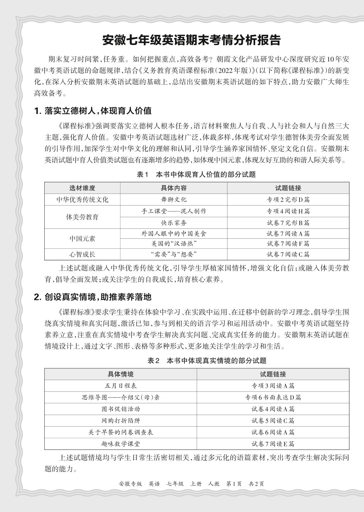 初中英语人教版七年级期末考情分析报告(2023秋安徽)