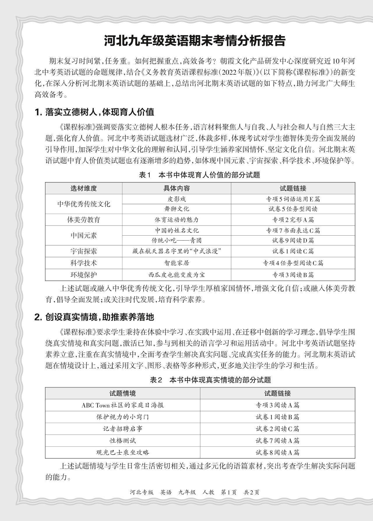 初中英语人教版九年级期末考情分析报告(2023秋河北)