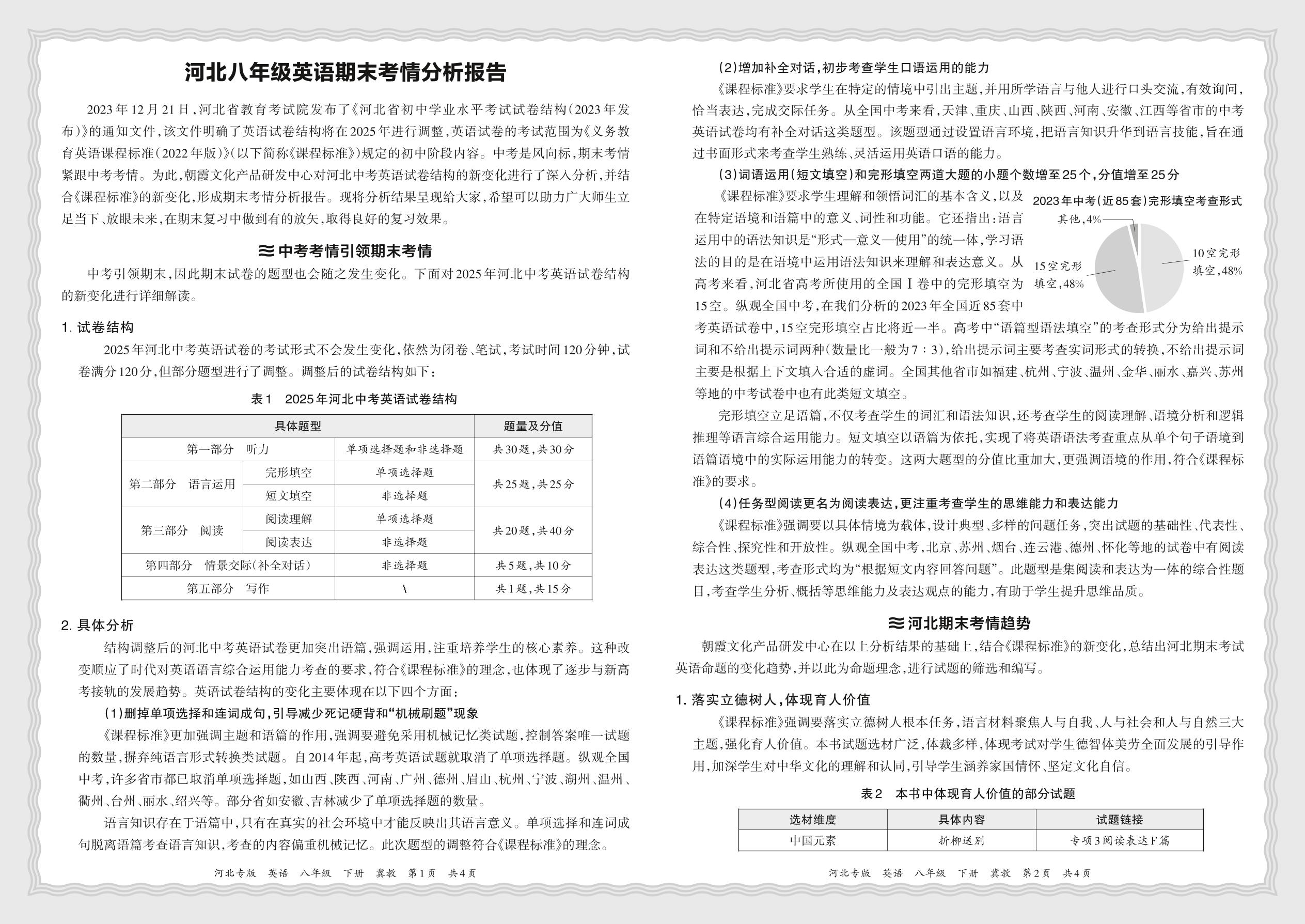 初中英语冀教版八年级期末考情分析报告(2024春河北)