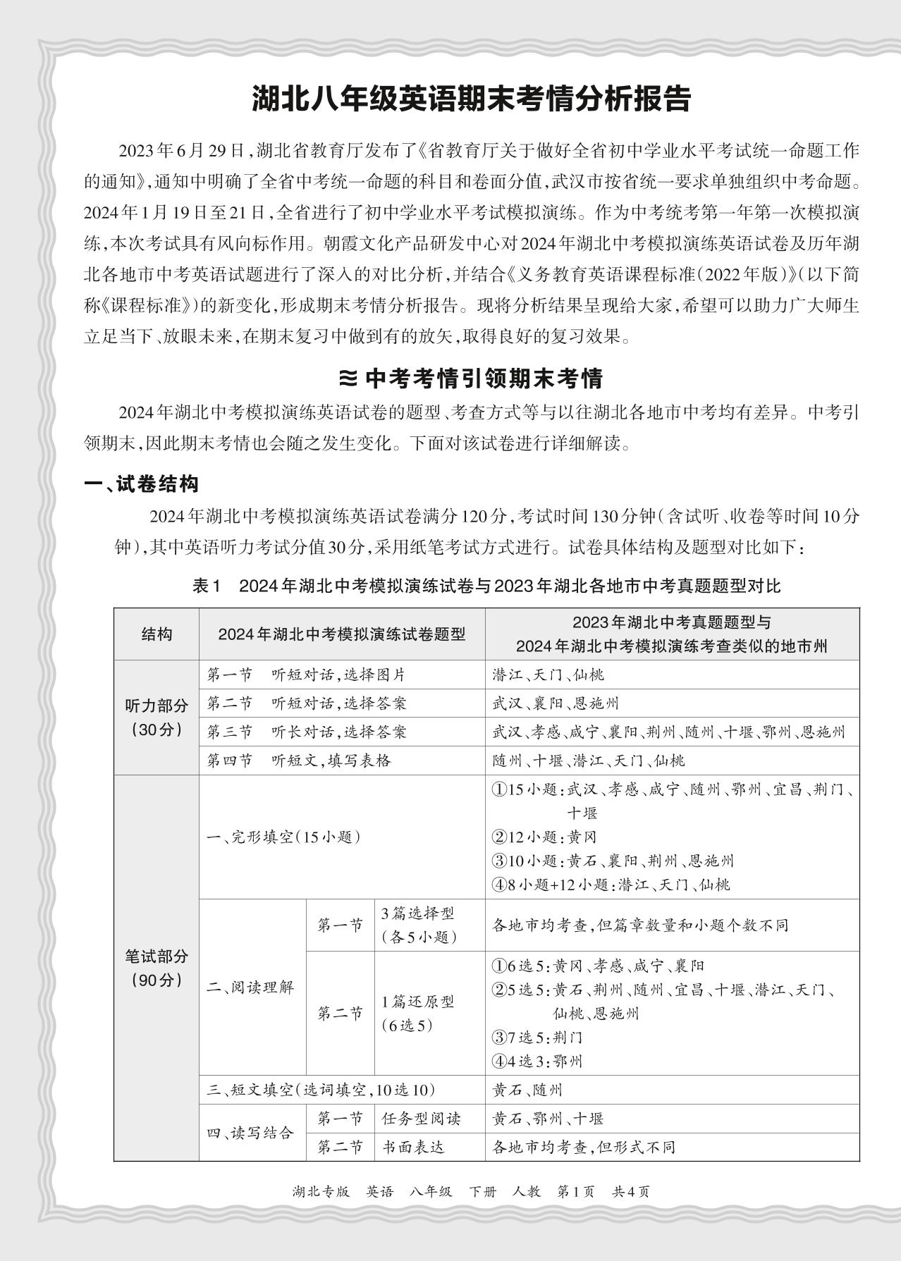 初中英语人教版八年级期末考情分析报告(2024春湖北)