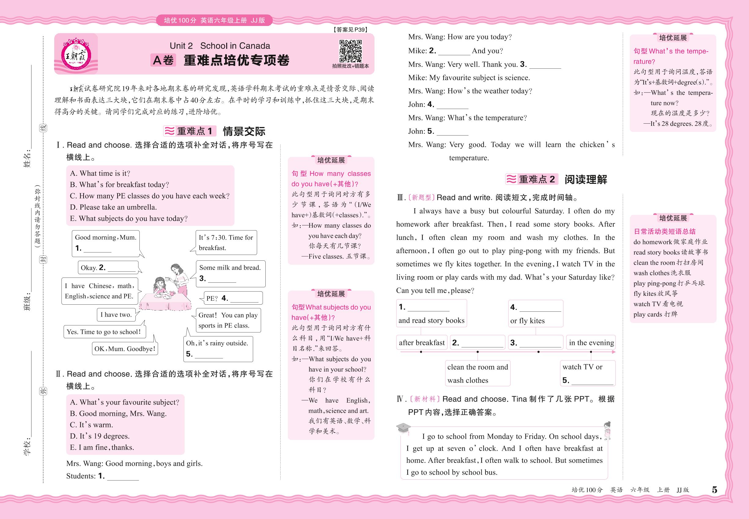 2024秋上册六年级英语冀教版 Unit 2 A卷 重难点培优专项卷