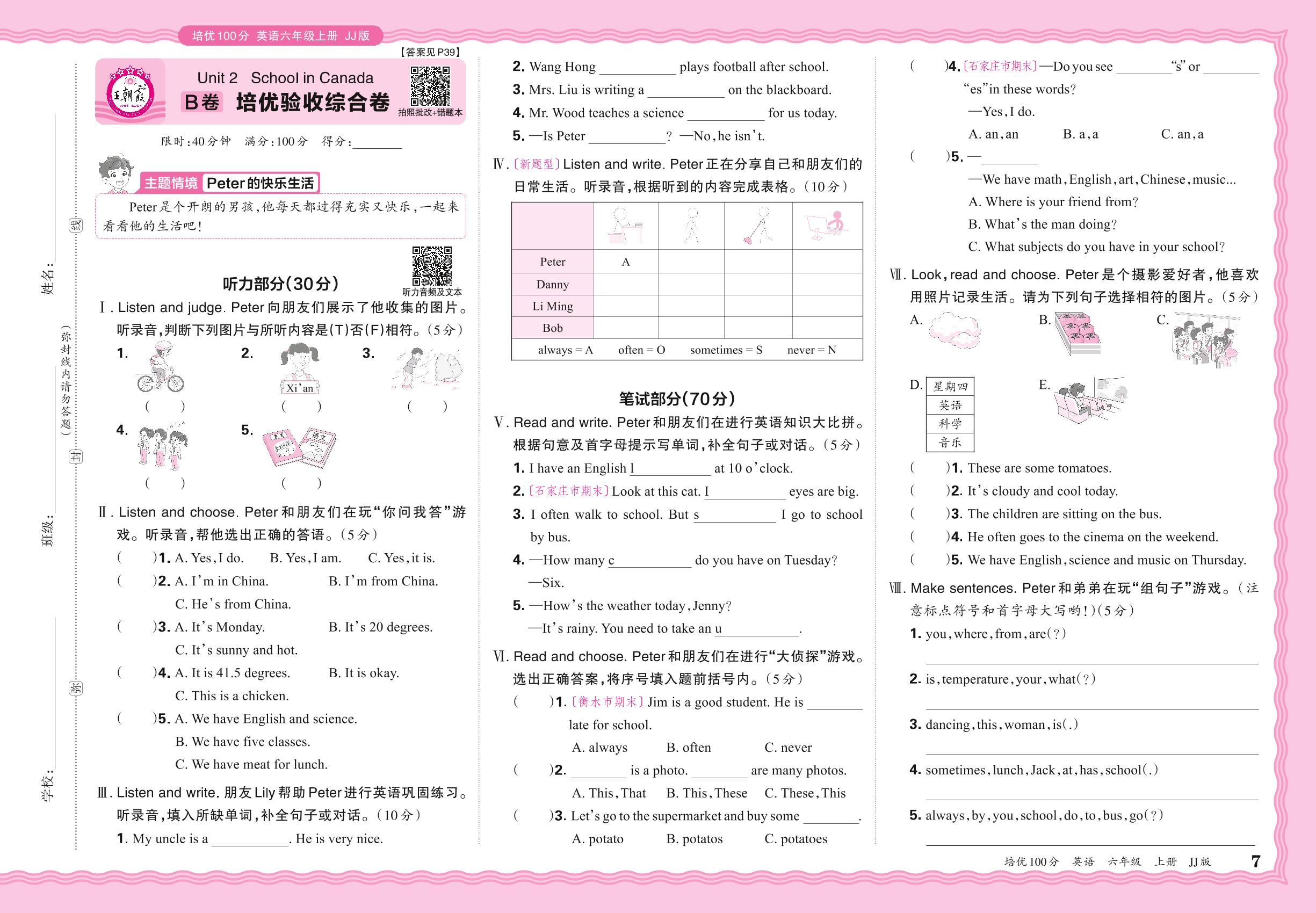2024秋上册六年级英语冀教版 Unit 2 B卷 培优验收综合卷