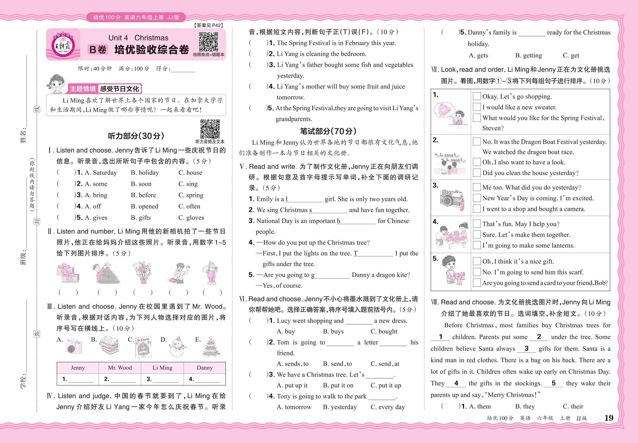 2024秋上册六年级英语冀教版 Unit 4 B卷 培优验收综合卷