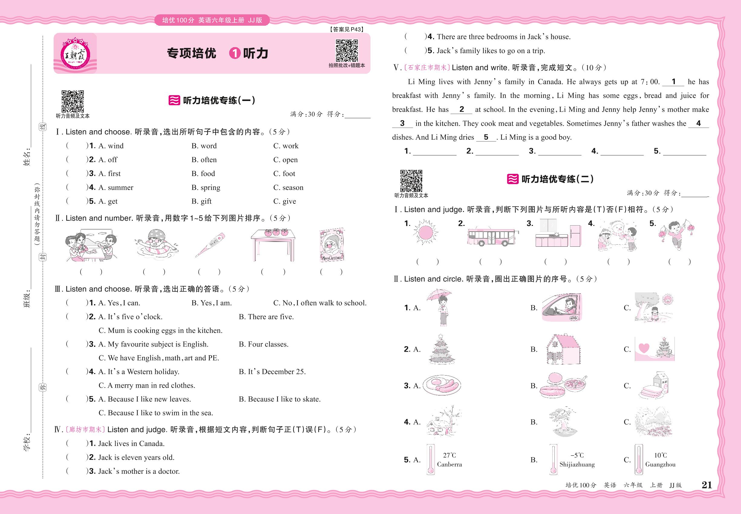 2024秋上册六年级英语冀教版 期末专项卷PY版·听力【1】