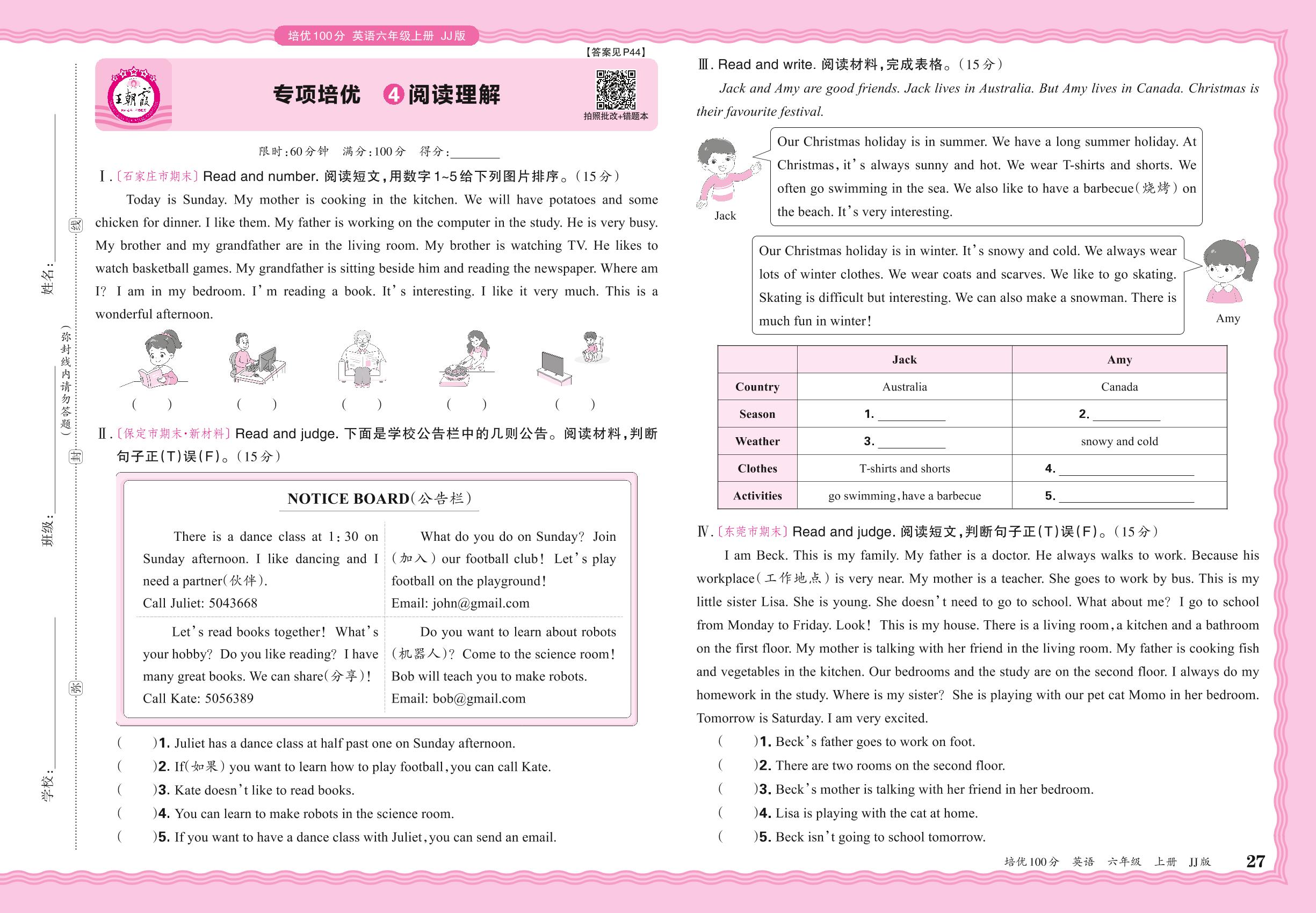 2024秋上册六年级英语冀教版 期末专项卷PY版·阅读理解【4】