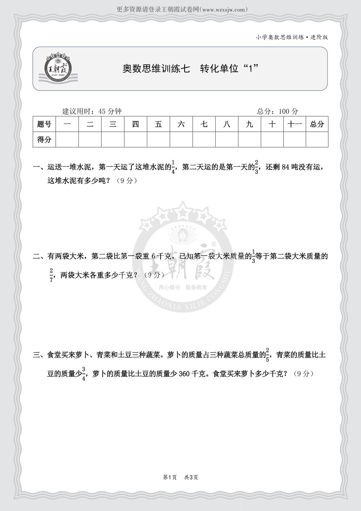 小学奥数思维训练七 转化单位“1”(进阶版)