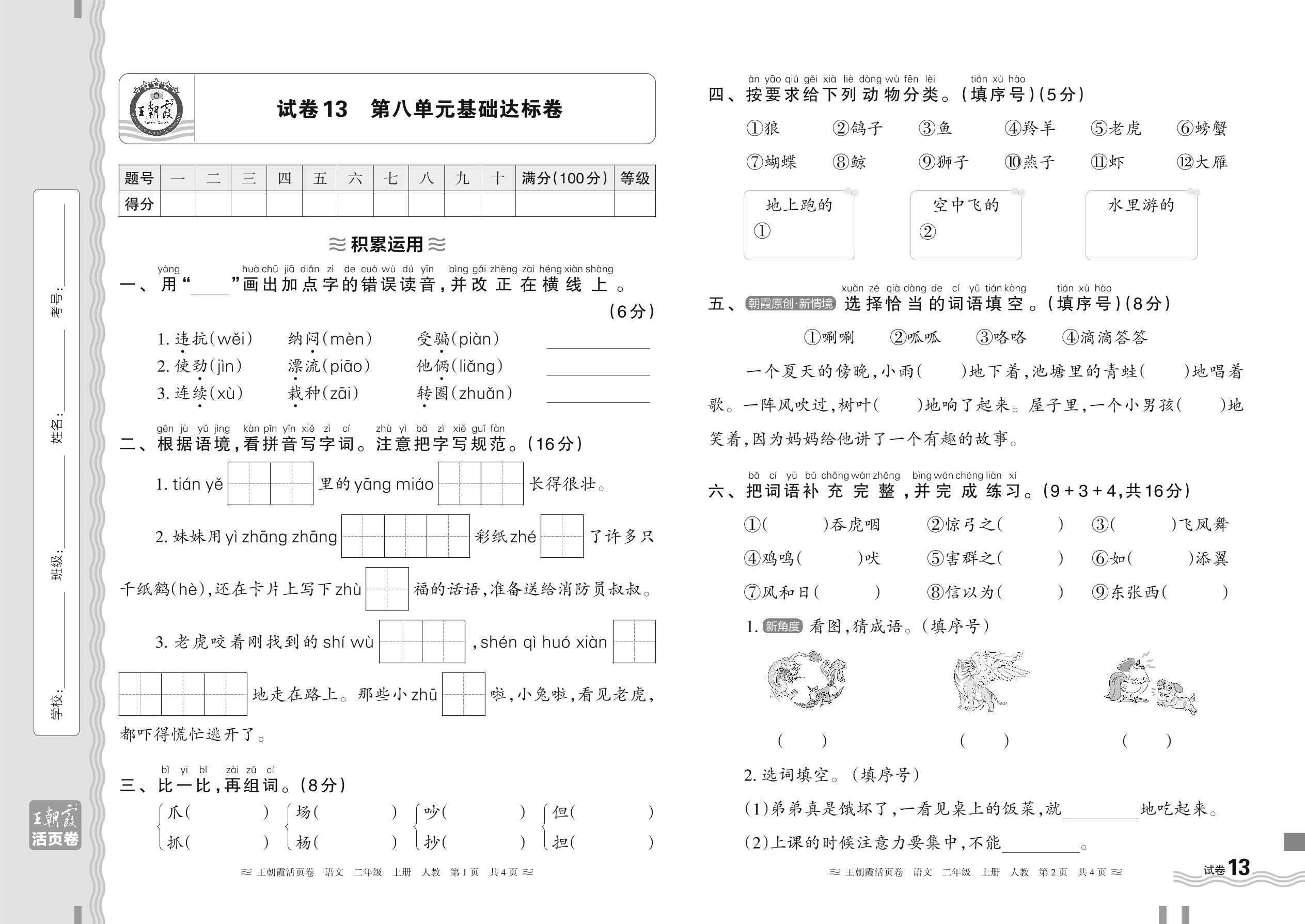 2024秋上册二年级语文人教版 第八单元基础达标卷【13】