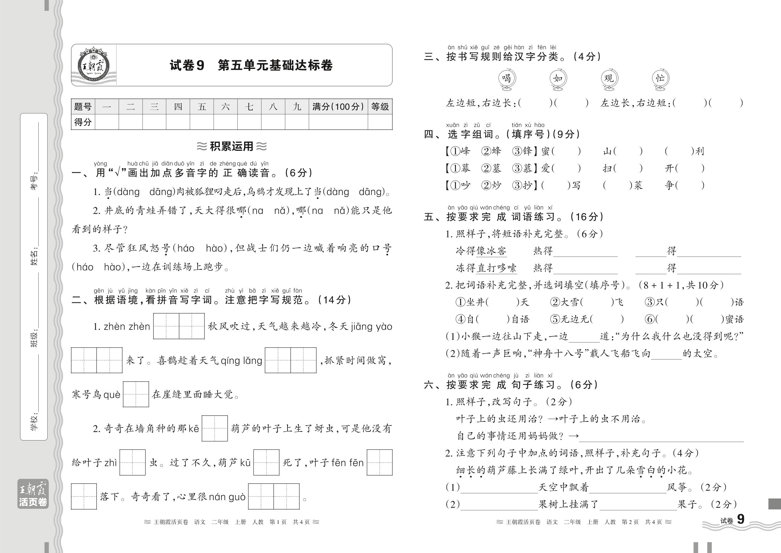 二年级语文人教版上册单元卷