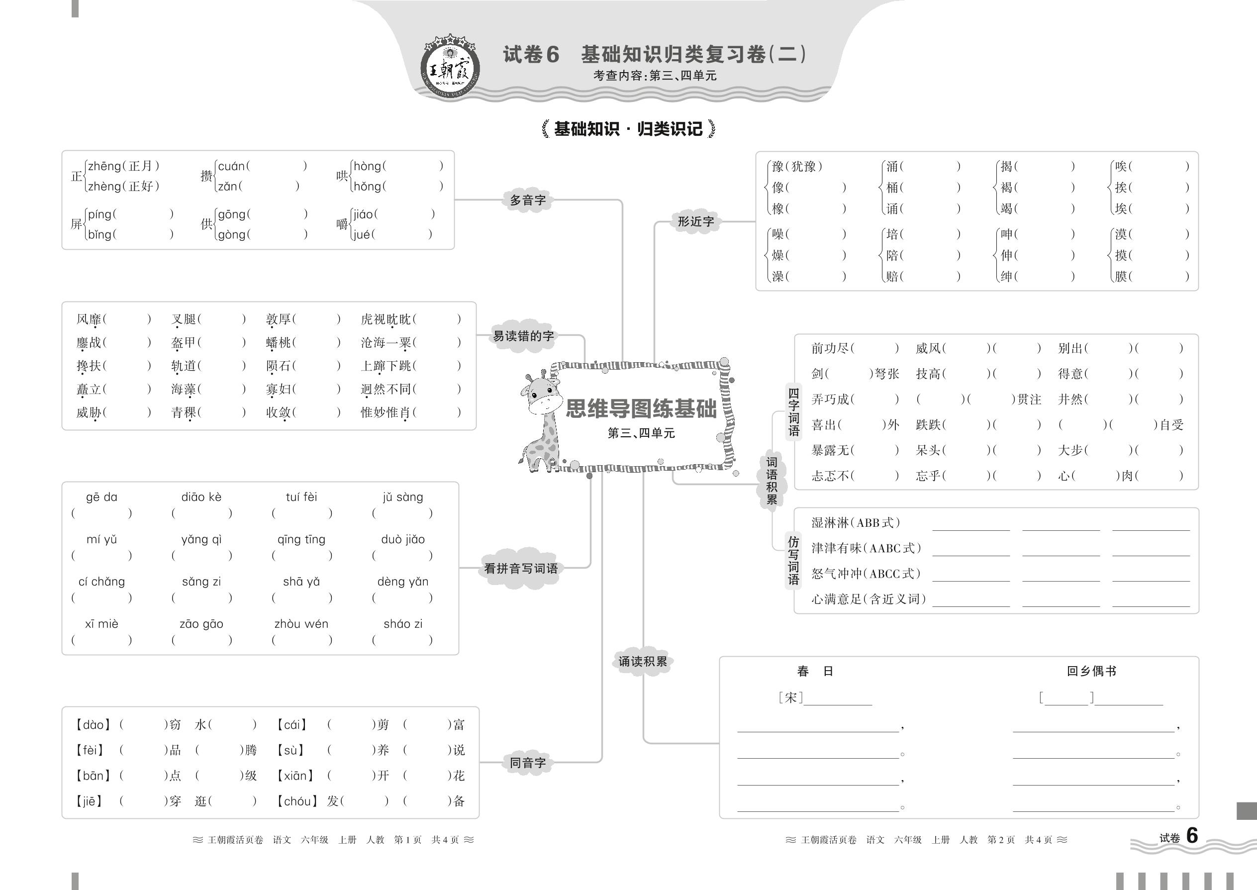2024秋上册六年级语文人教版 第三、四单元基础知识归类复习卷【6】
