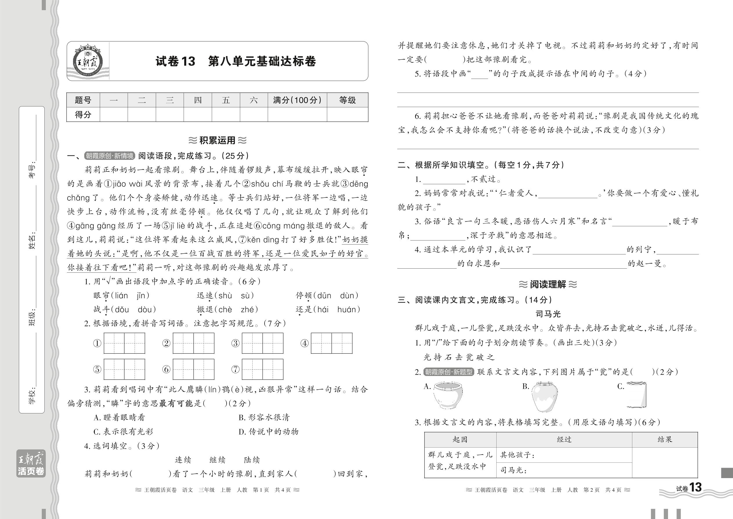 2024秋上册三年级语文人教版 第八单元基础达标卷【13】