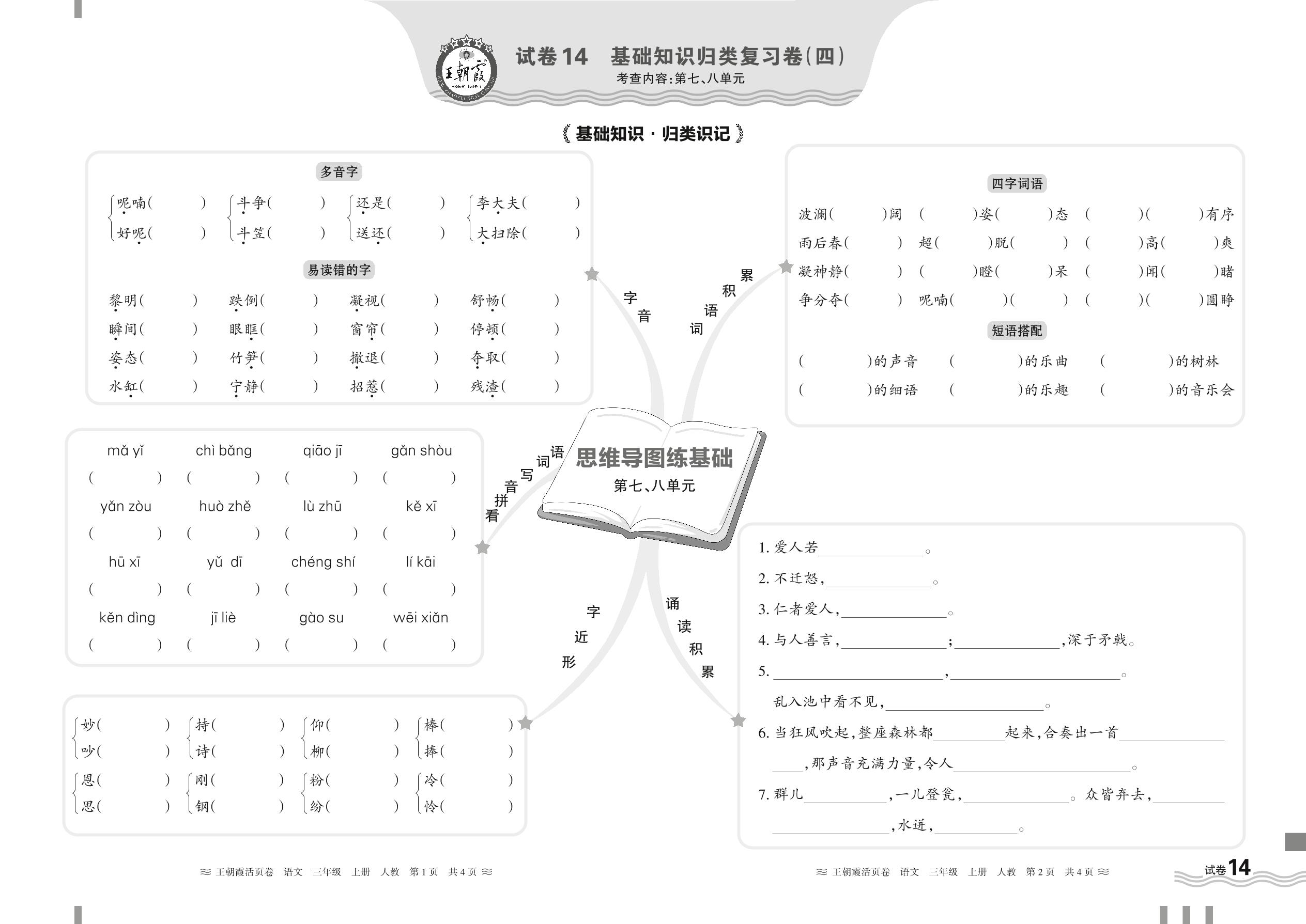 2024秋上册三年级语文人教版 第七、八单元基础知识归类复习卷【14】