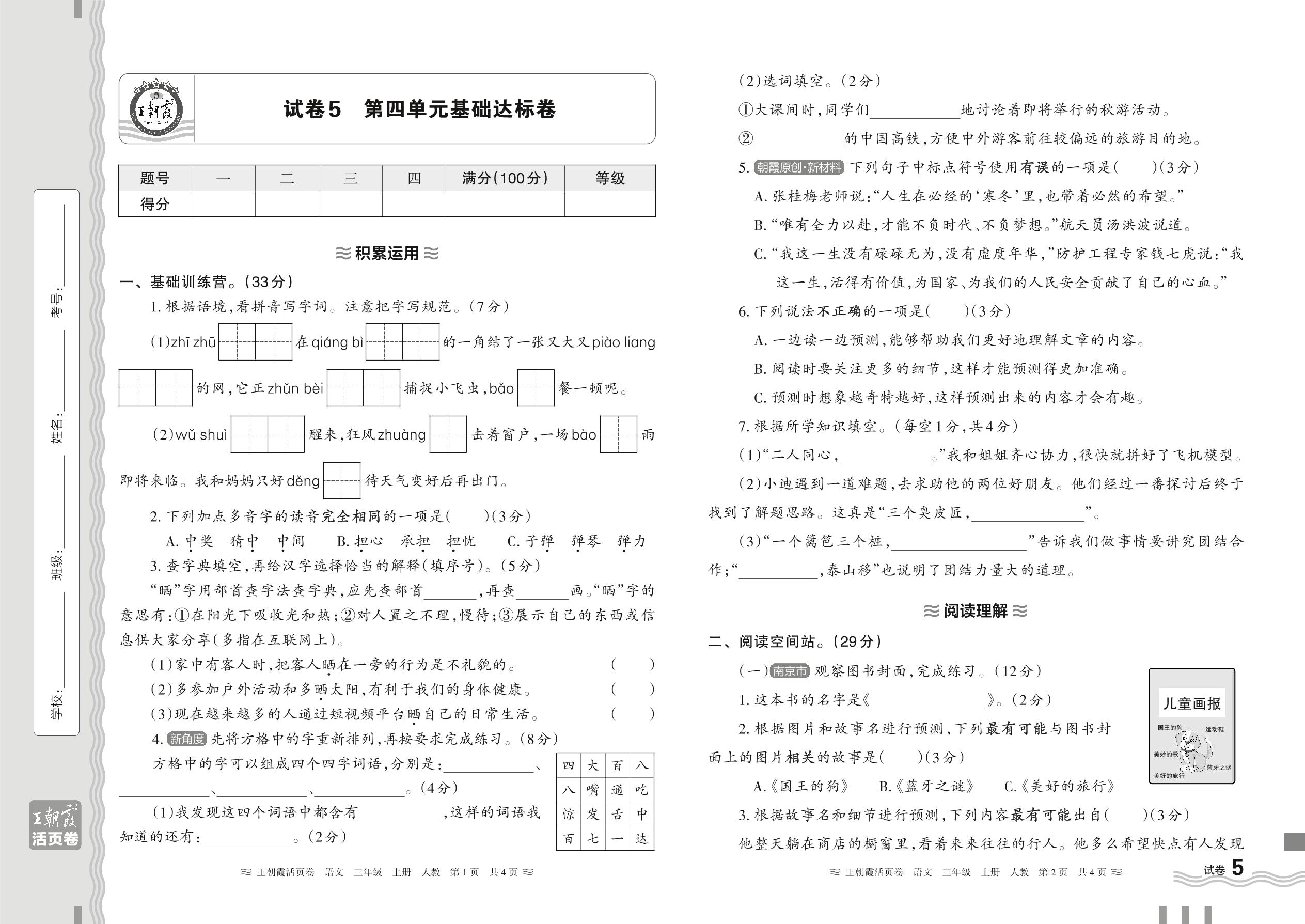 2024秋上册三年级语文人教版 第四单元基础达标卷【5】