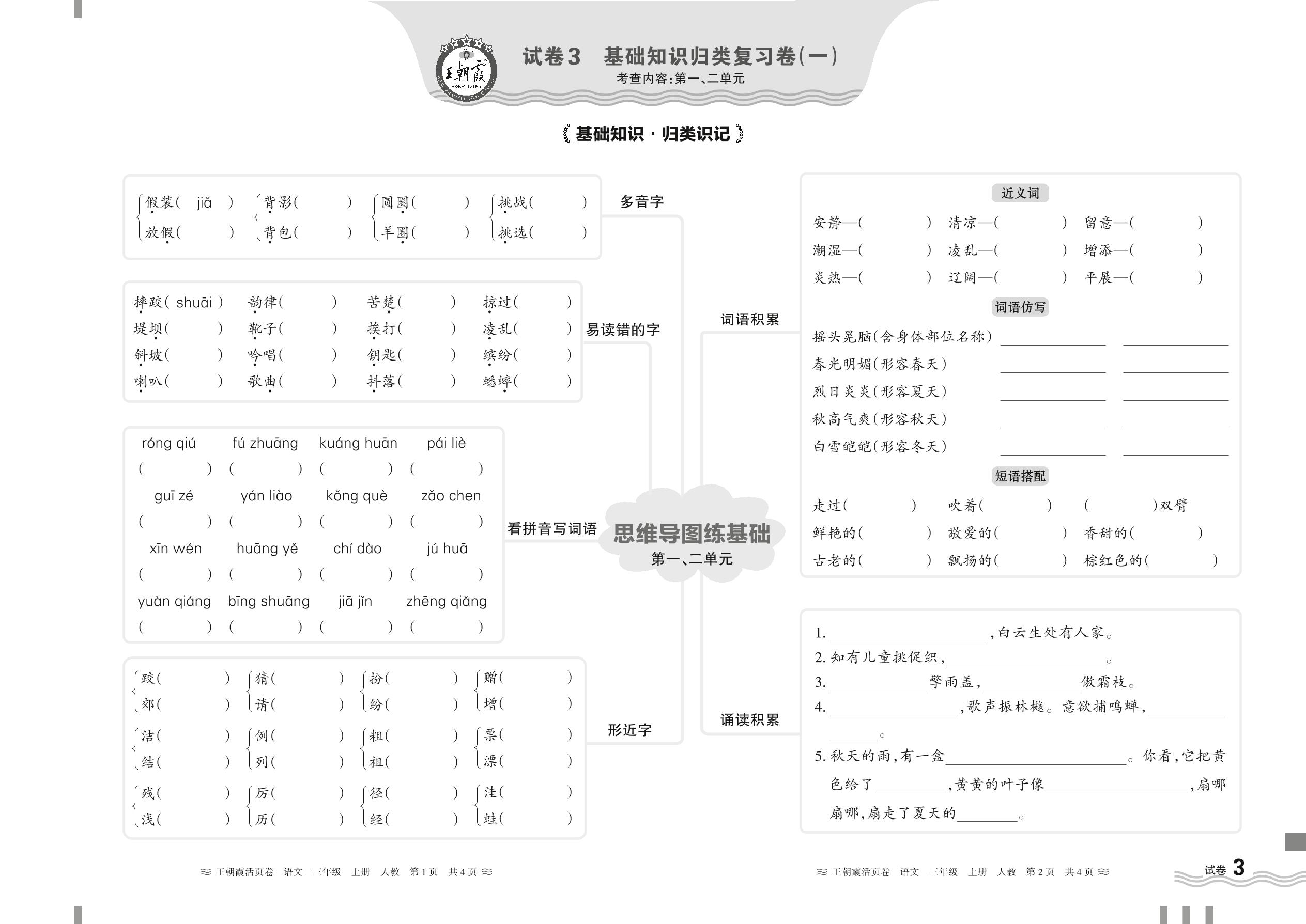 2024秋上册三年级语文人教版 第一、二单元基础知识归类复习卷【3】