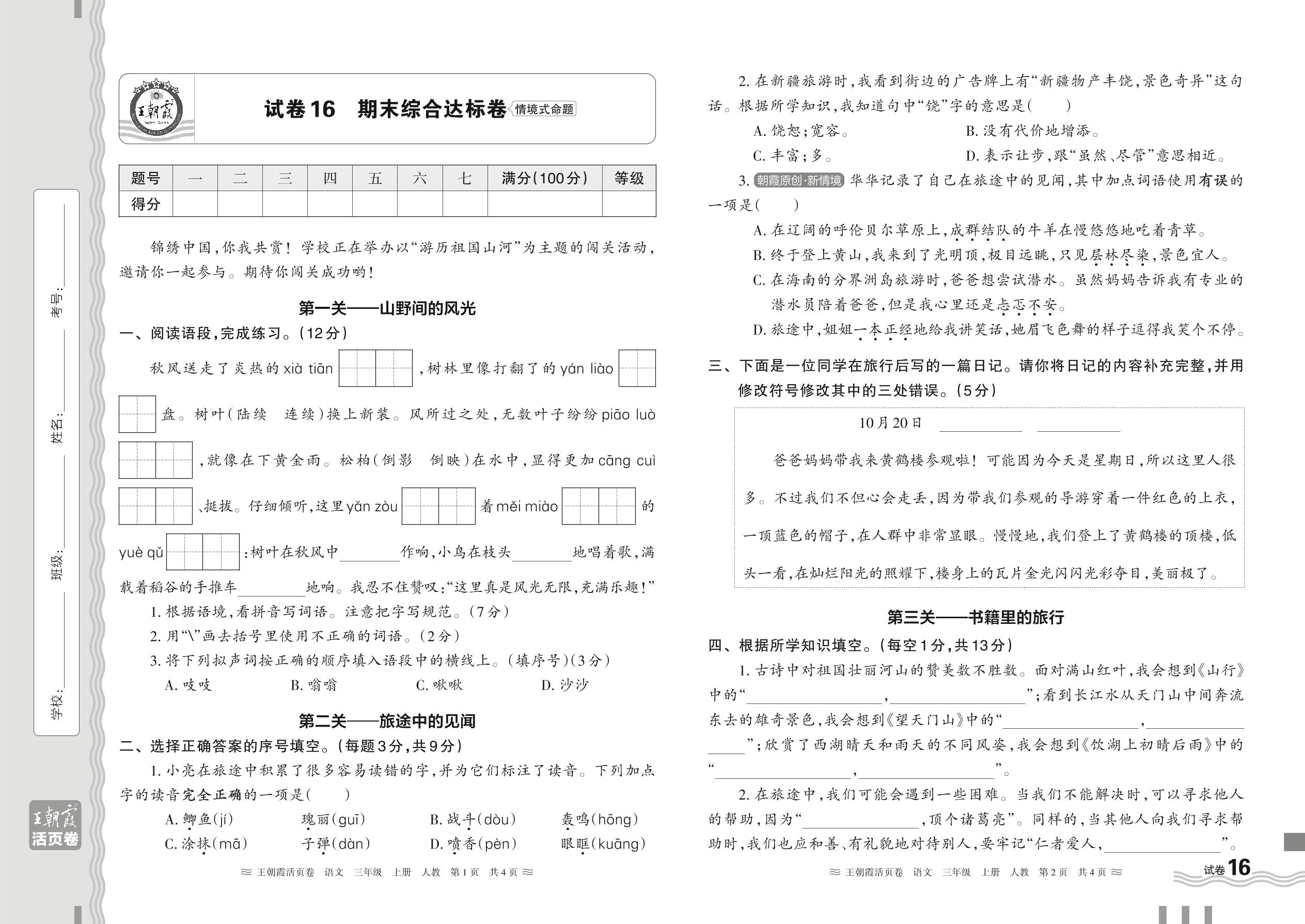 2024秋上册三年级语文人教版 期末综合达标卷【16】