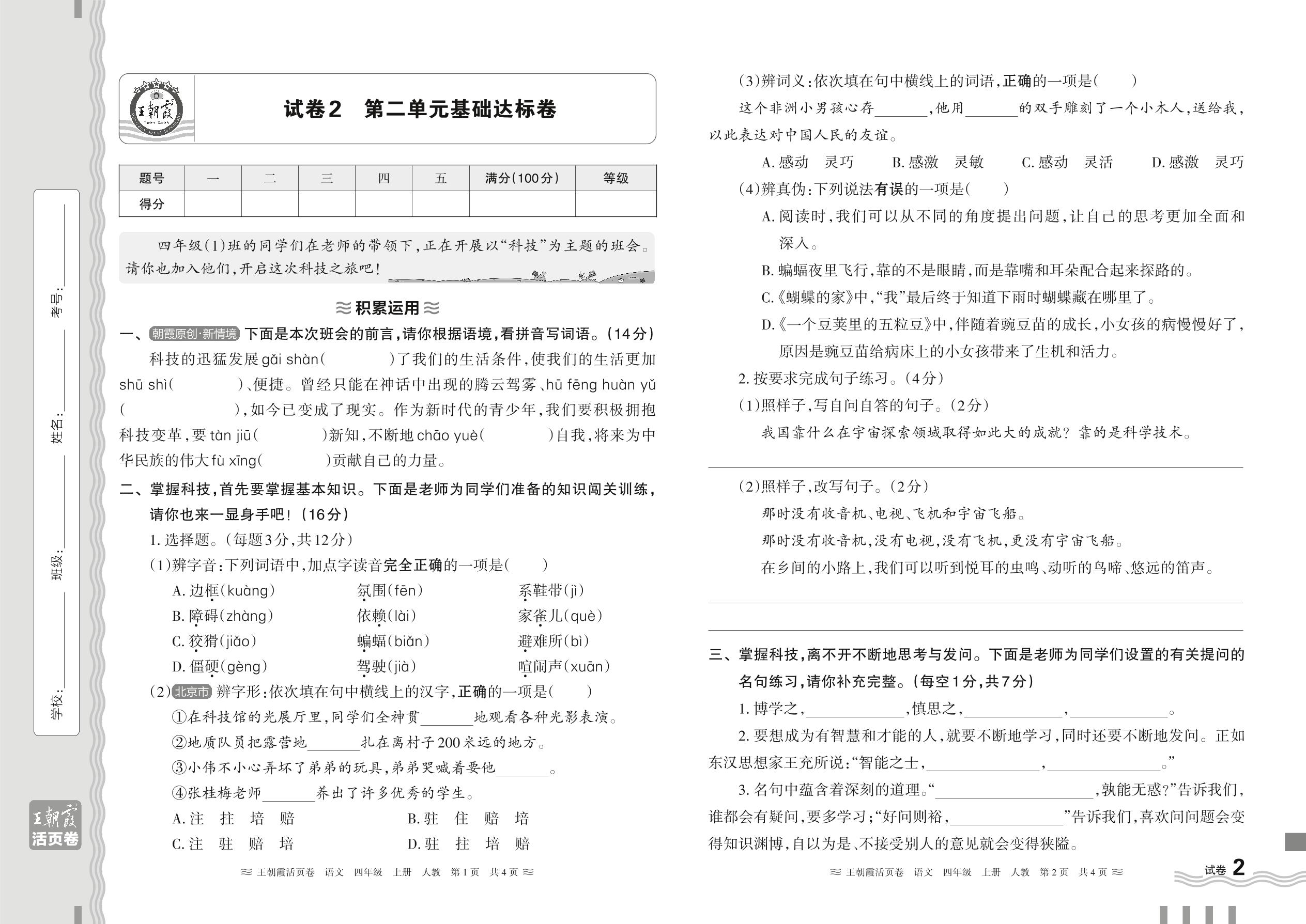 2024秋上册四年级语文人教版 第二单元基础达标卷【2】