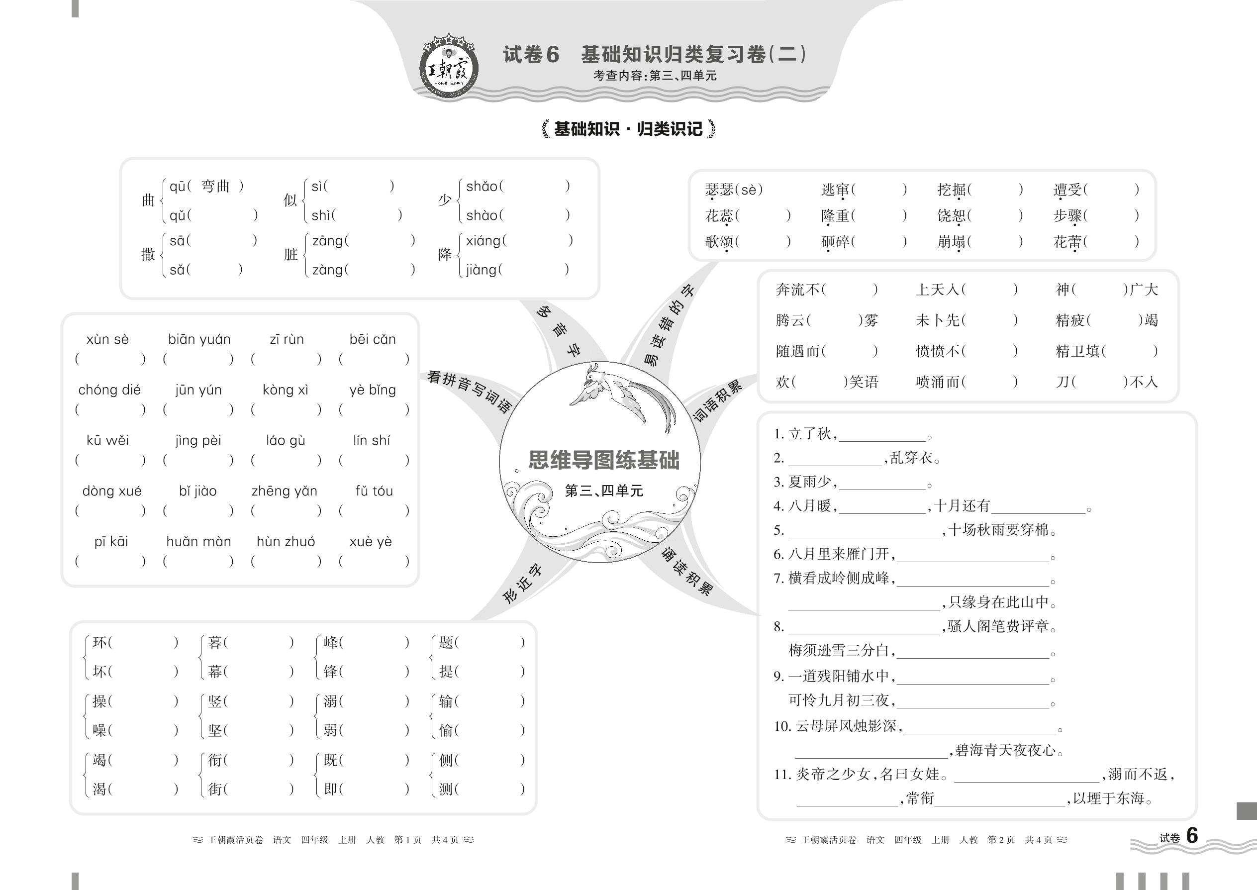 2024秋上册四年级语文人教版 第三、四单元基础知识归类复习卷【6】