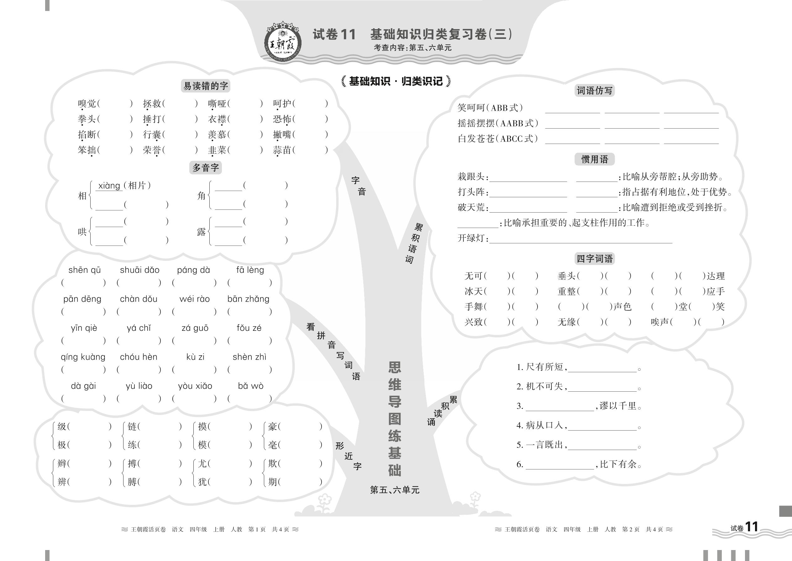 2024秋上册四年级语文人教版 第五、六单元基础知识归类复习卷【11】