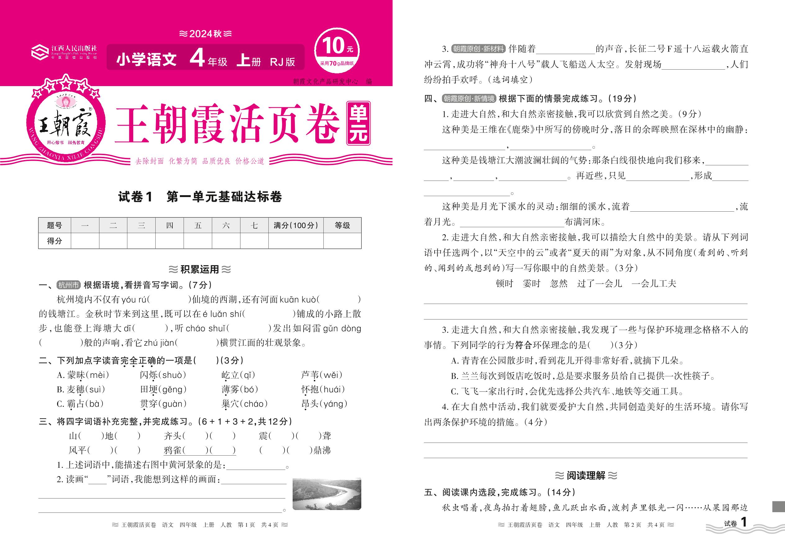 2024秋上册四年级语文人教版 第一单元基础达标卷【1】