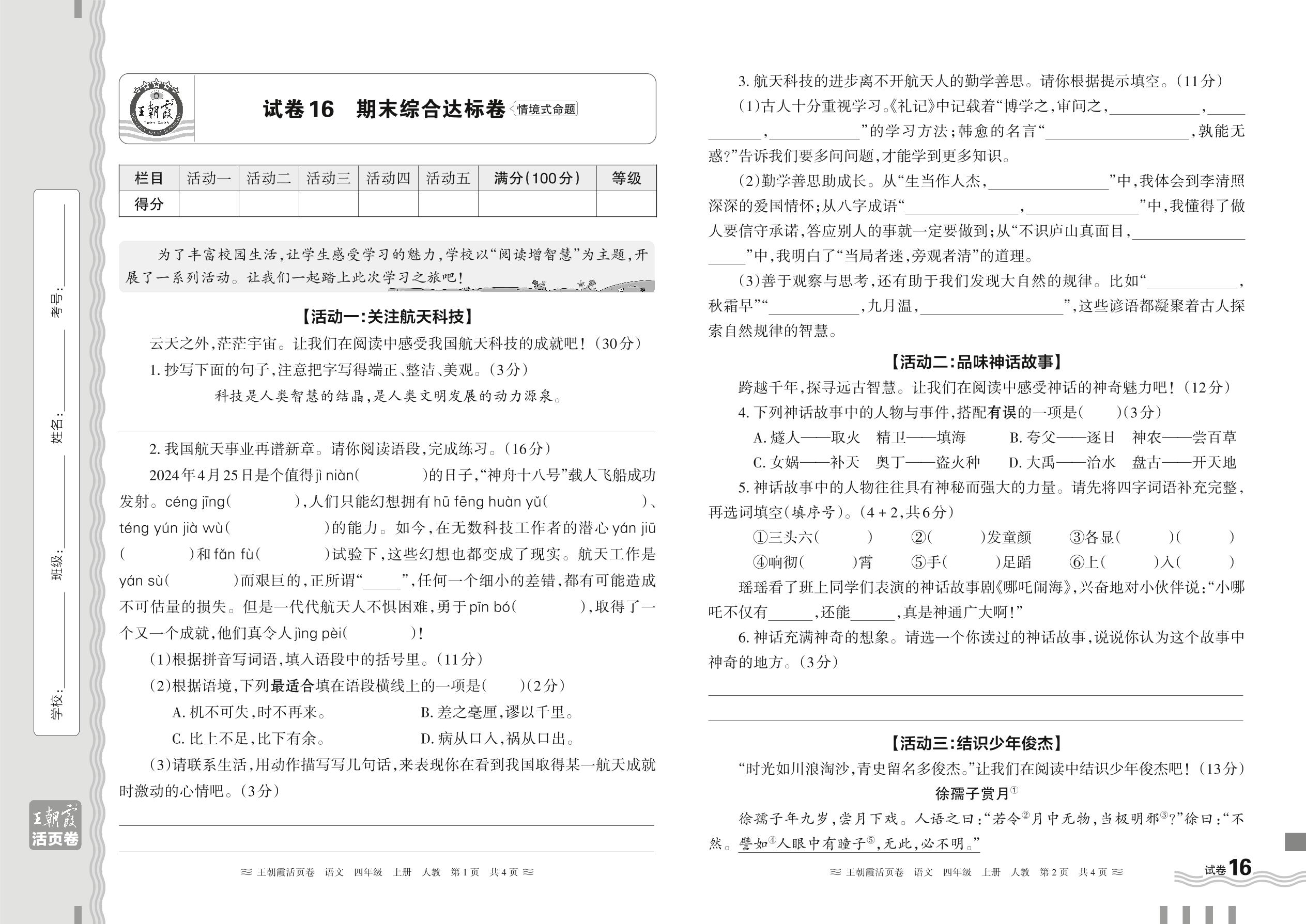 2024秋上册四年级语文人教版 期末综合达标卷【16】