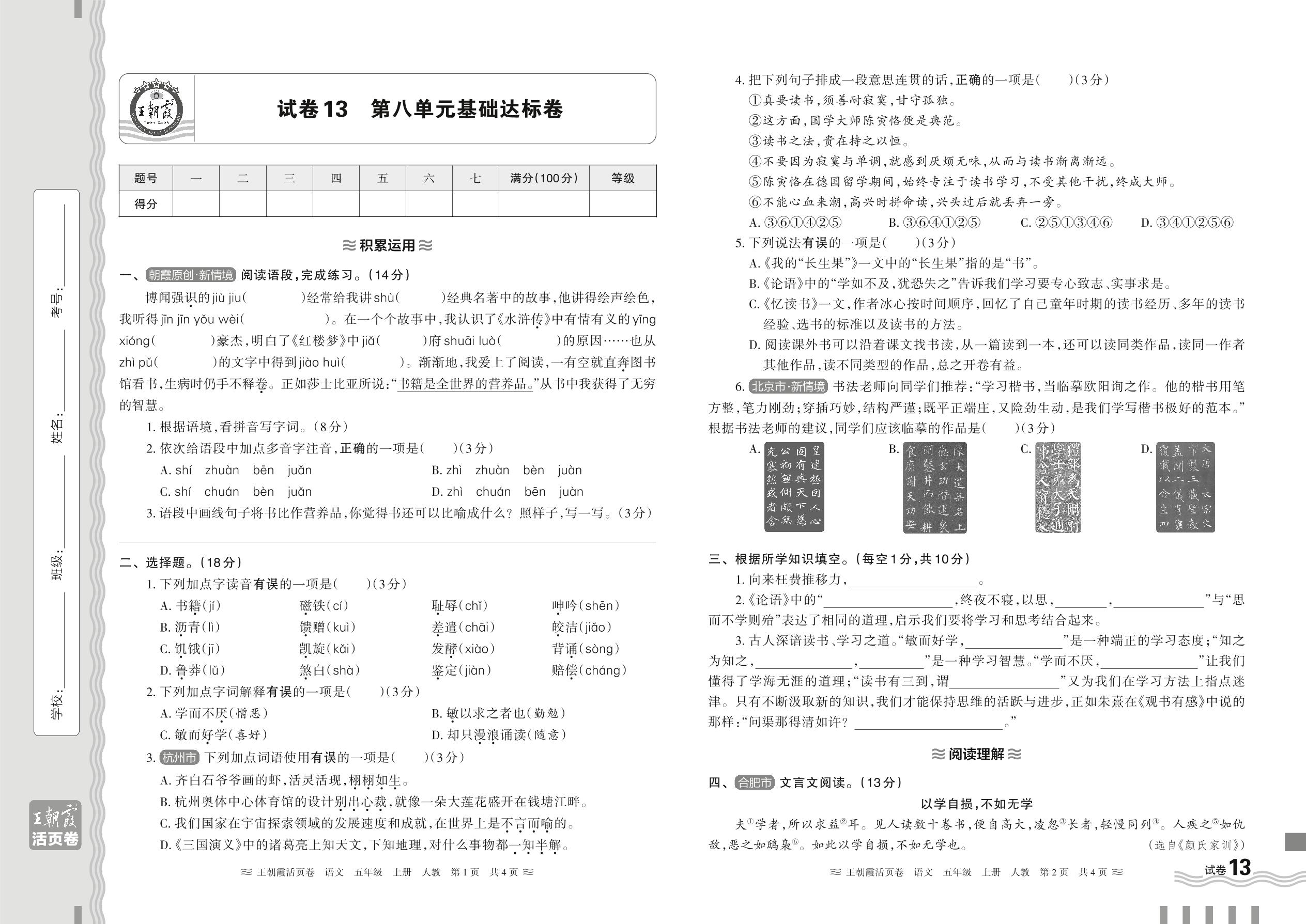 五年级语文人教版上册单元卷