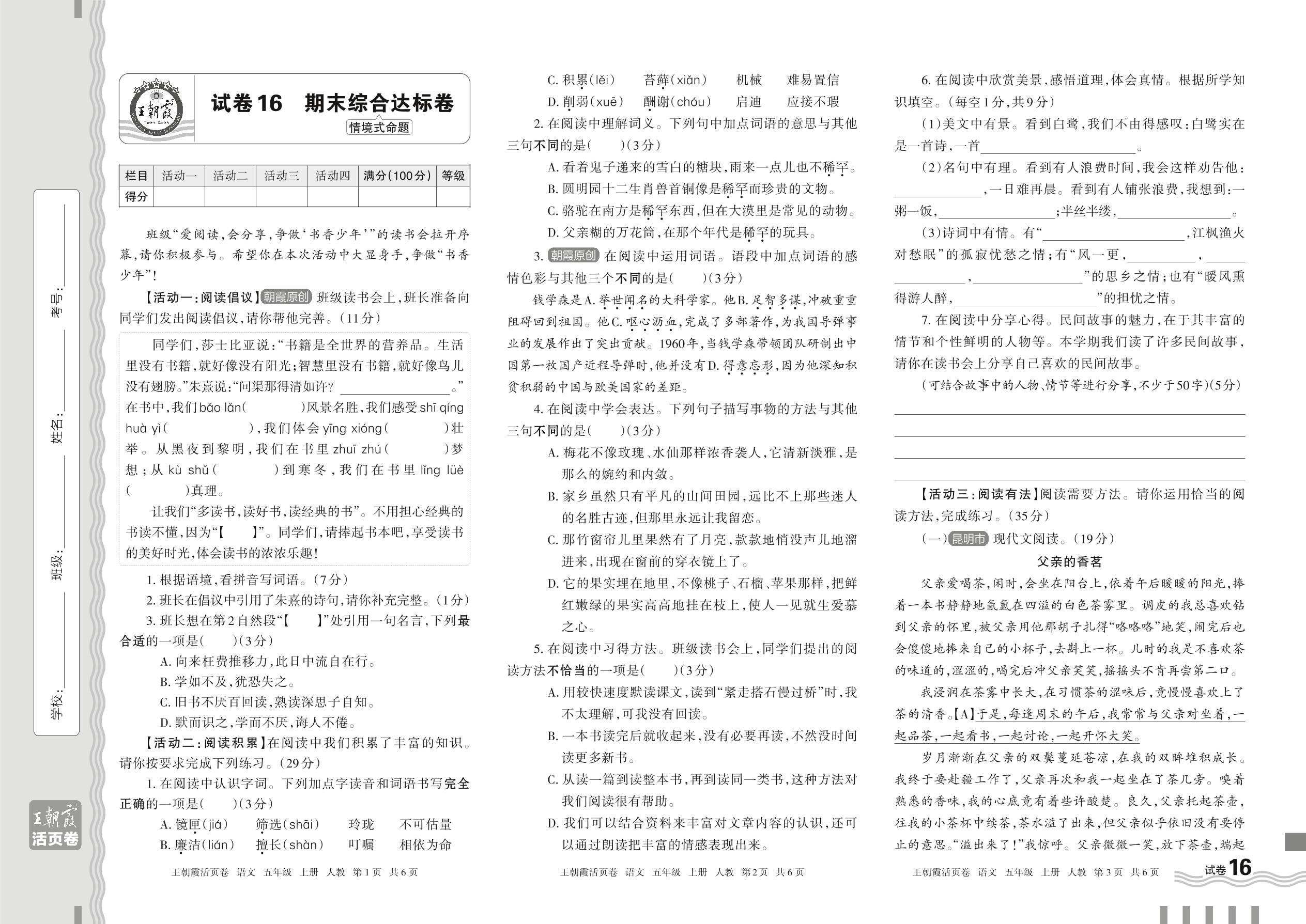 2024秋上册五年级语文人教版 期末综合达标卷【16】