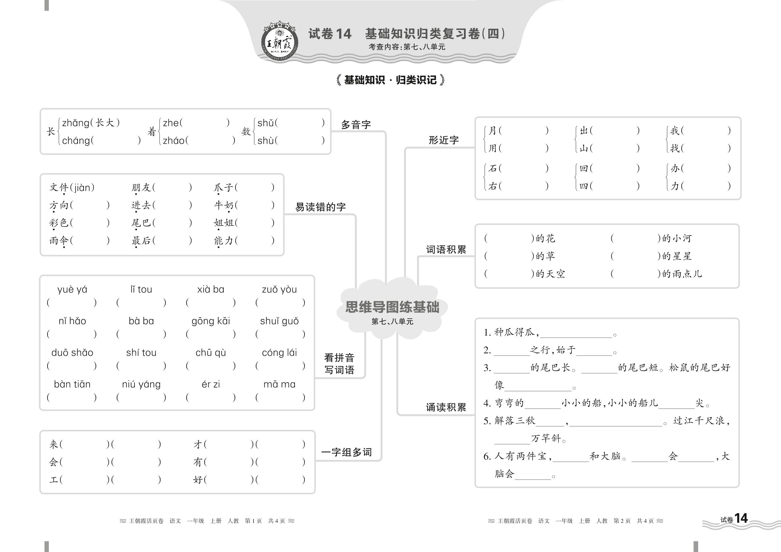 2024秋上册一年级语文人教版 第七、八单元基础知识归类复习卷【14】