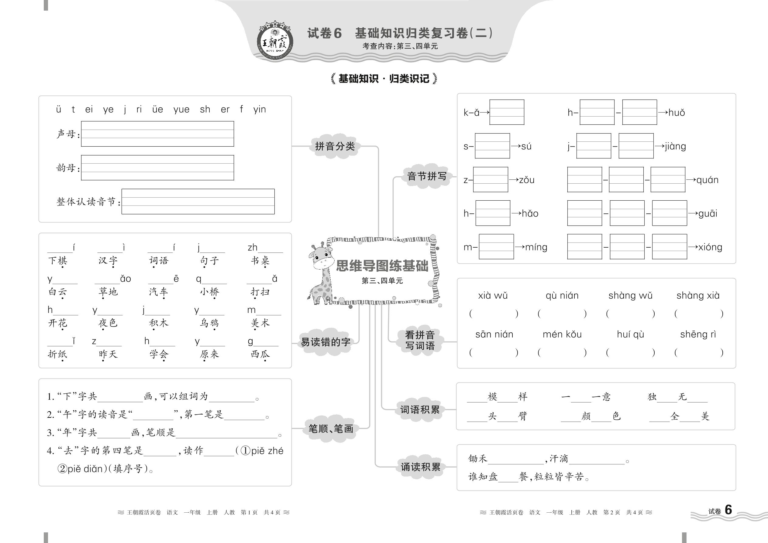 2024秋上册一年级语文人教版 第三、四单元基础知识归类复习卷【6】