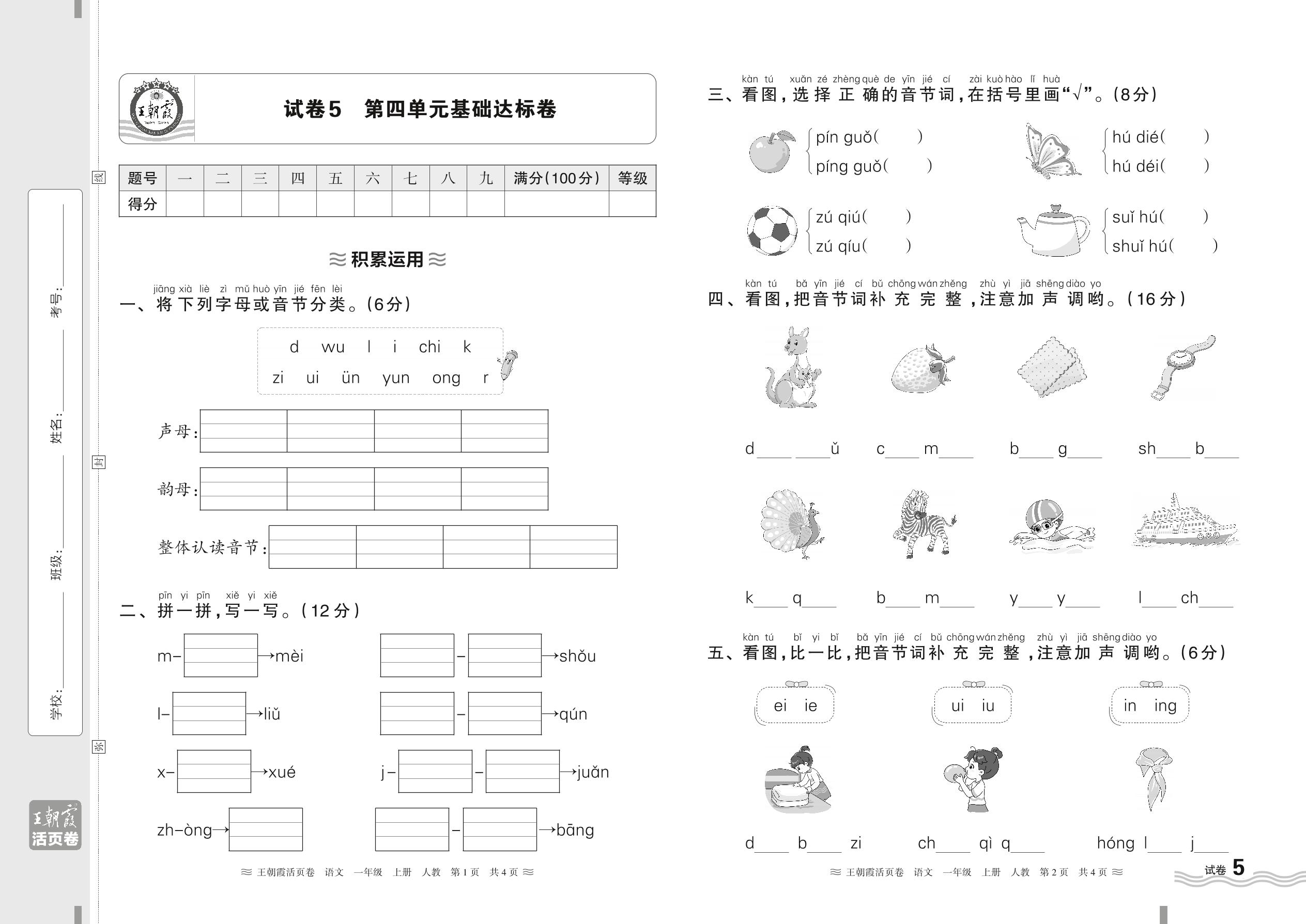 2024秋上册一年级语文人教版 第四单元基础达标卷【5】