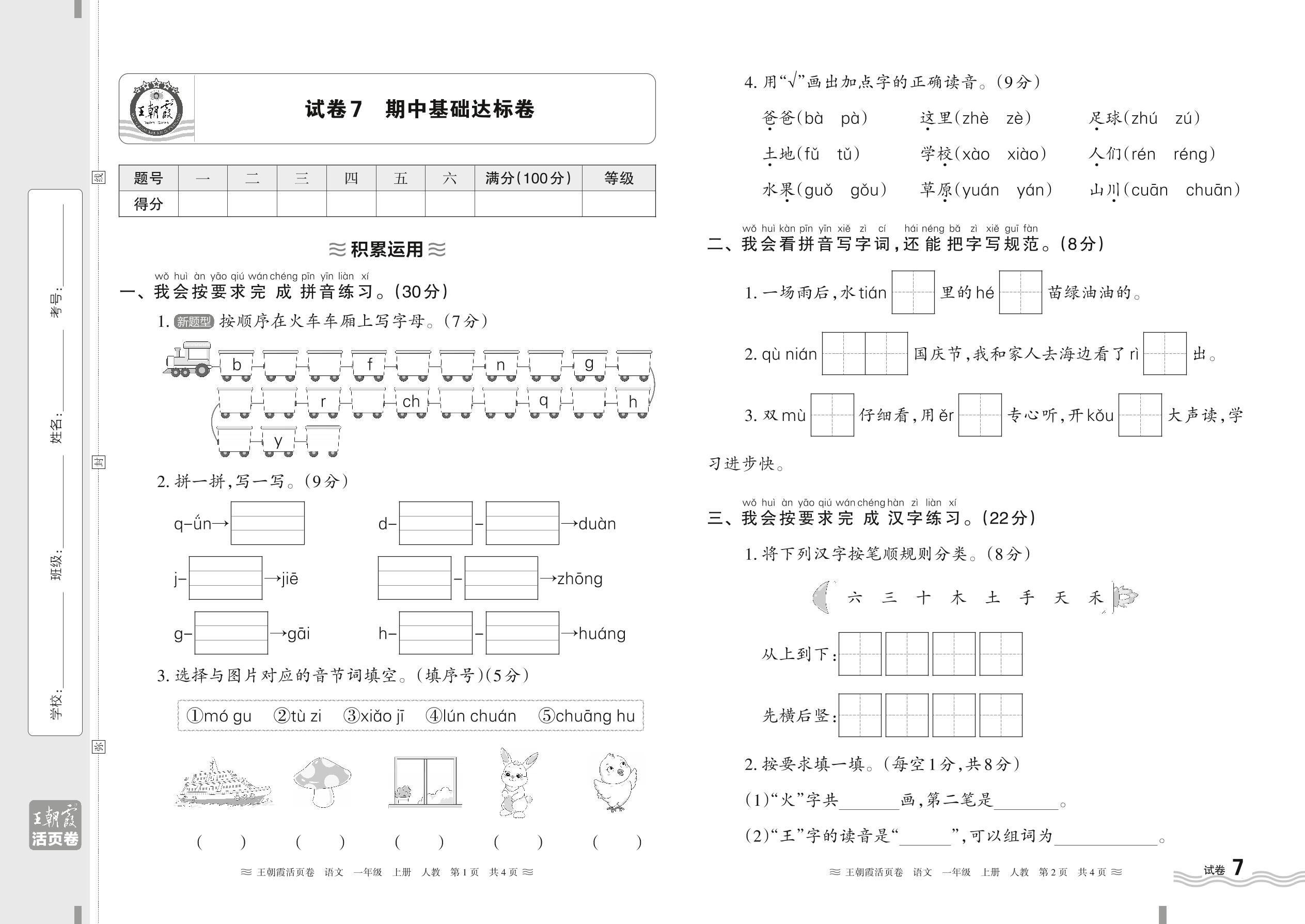 2024秋上册一年级语文人教版 期中基础达标卷【7】