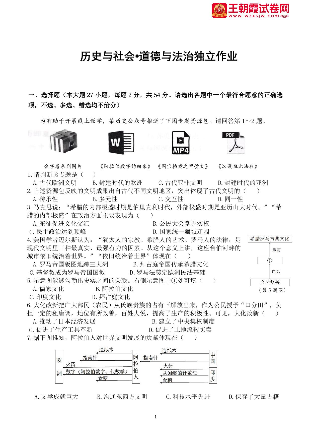 浙江省杭州市十三中2023-2024学年第一学期12月份独立作业(月考)九年级历史与社会、道德与法治综合卷