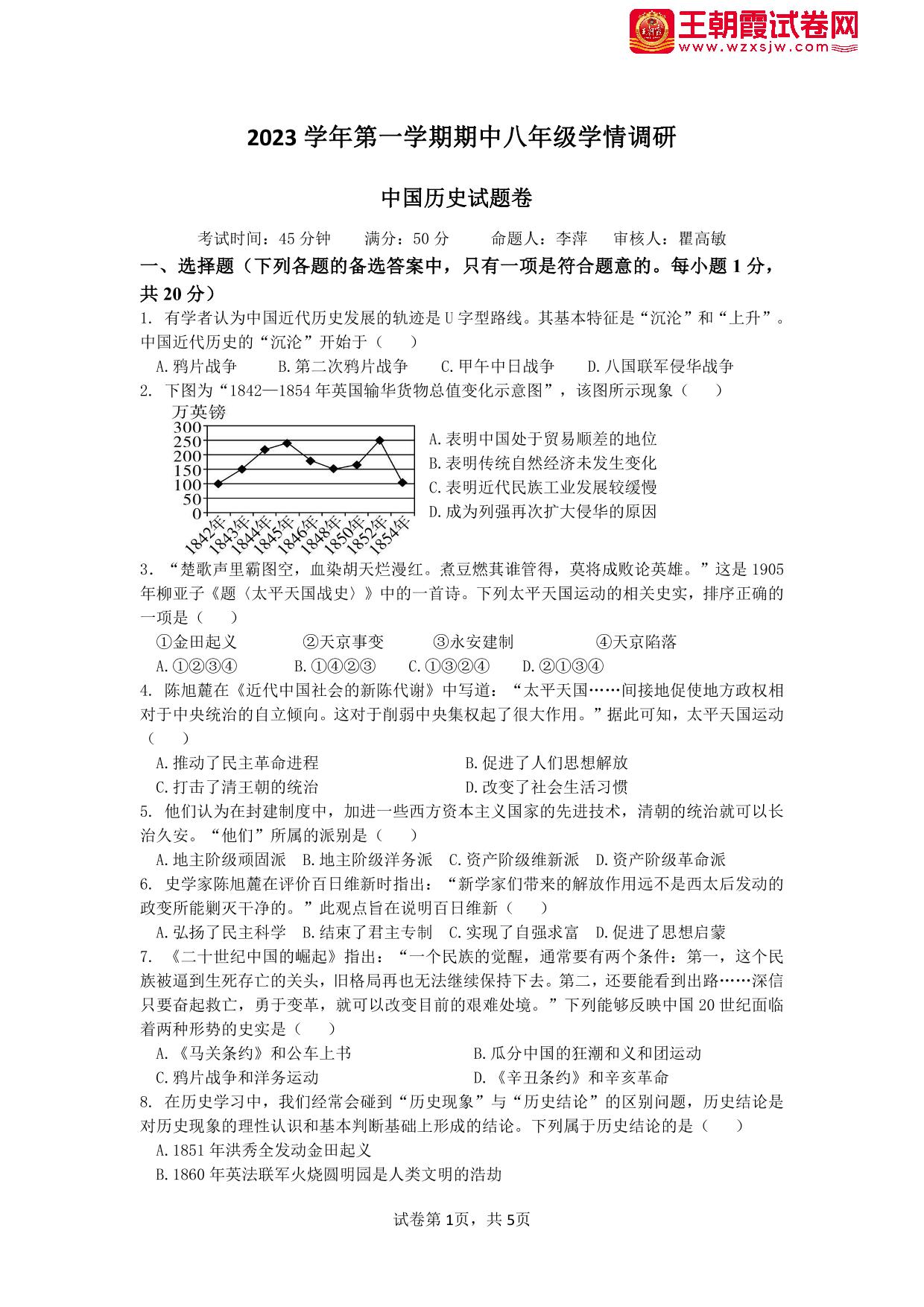 浙江省杭州市萧山区新街中学2023-2024学年第一学期期中学情调研八年级历史与社会(人教版)