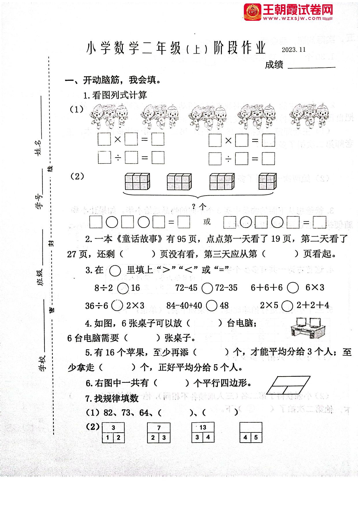 江苏省泰州市兴化市2023-2024学年上学期期中阶段作业二年级数学(苏教版)