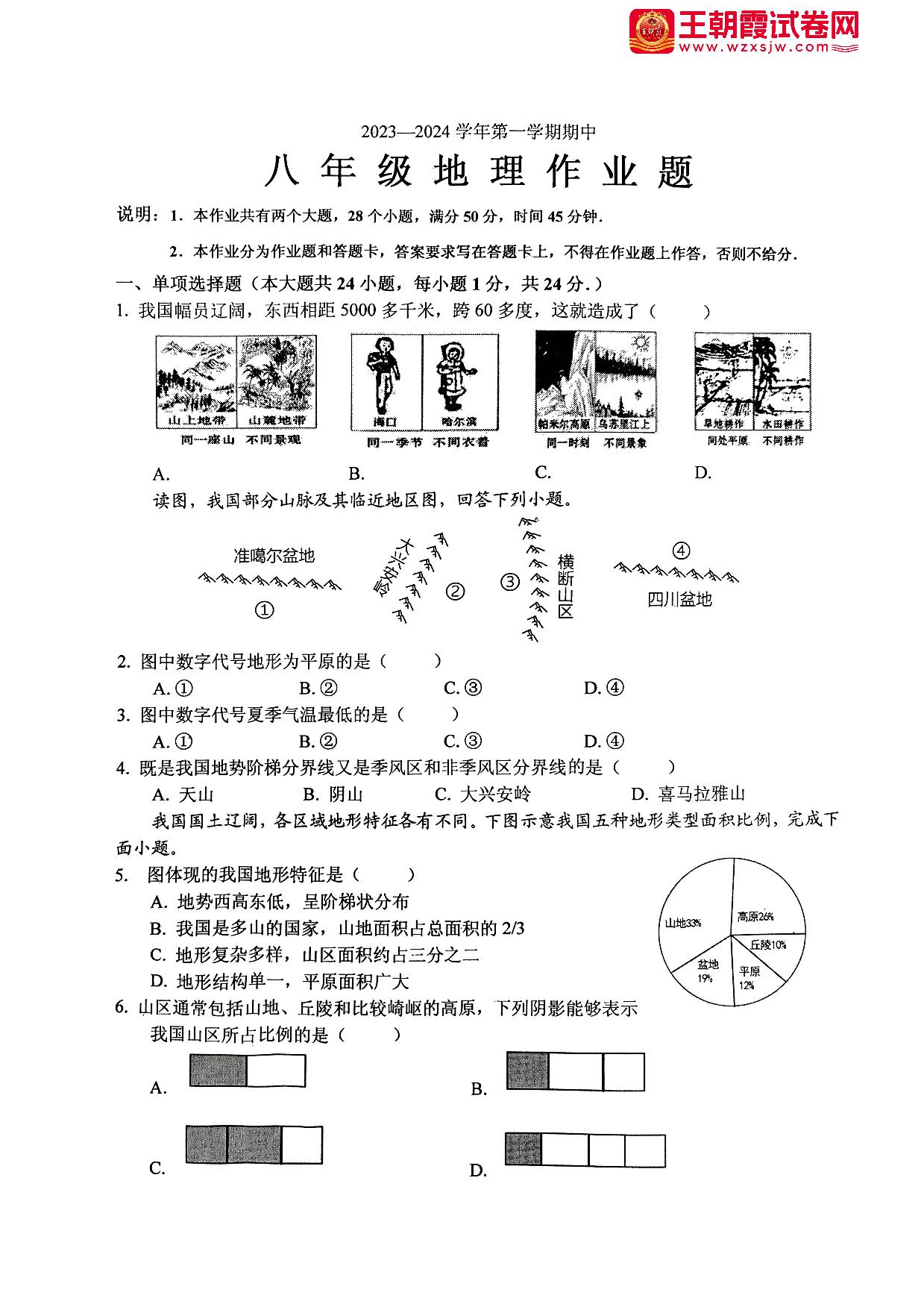 江西省鹰潭市余江区2023-2024学年第一学期期中考试试题八年级地理(中图版)