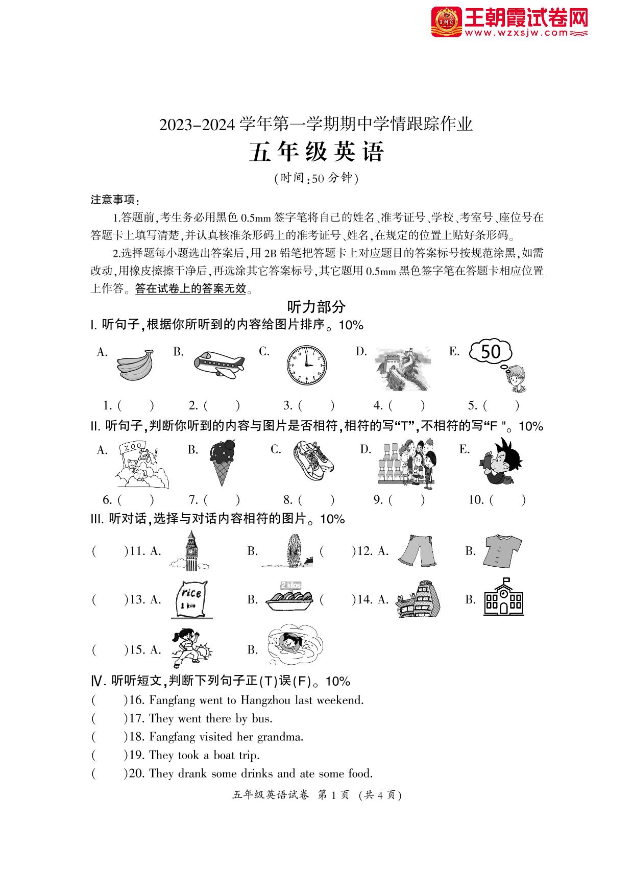 福建省三明市大田县2023-2024 学年第一学期期中学情跟踪作业五年级英语(外研版)【无听力音频】