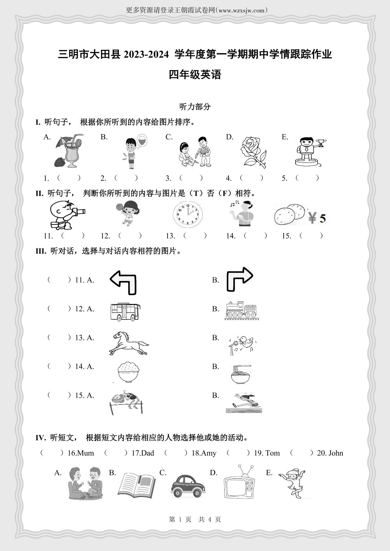 福建省三明市大田县2023-2024 学年第一学期期中学情跟踪作业四年级英语(外研版)【无听力音频】