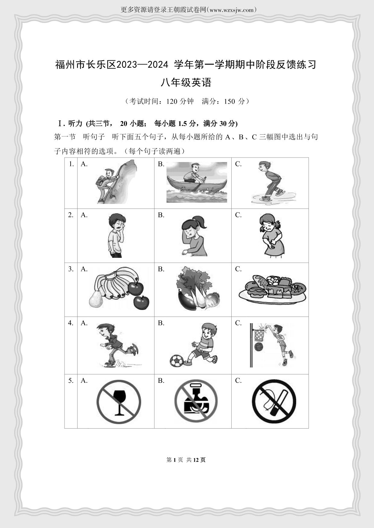 福建省福州市长乐区2023-2024学年第一学期期中阶段反馈练习八年级英语(新课标版)