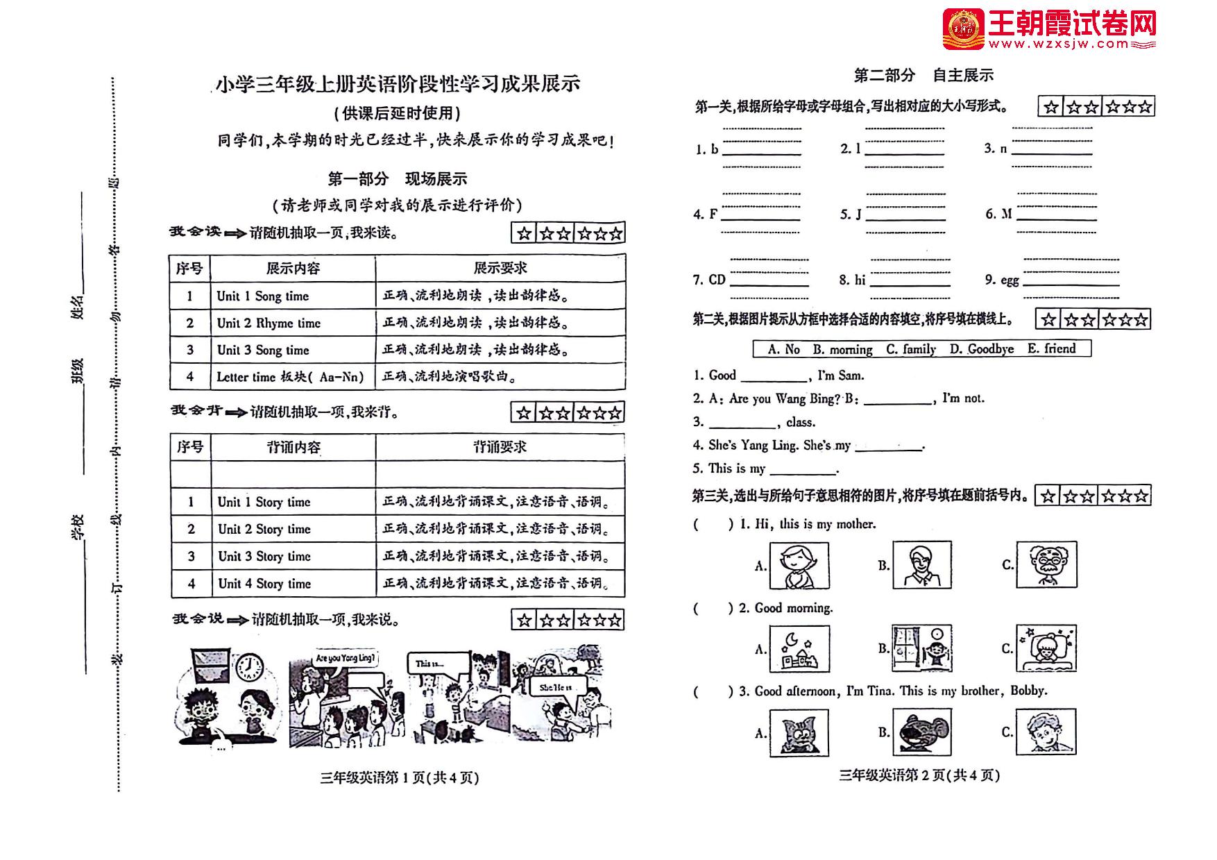 三年级英语译林版(三起始)上册期中卷