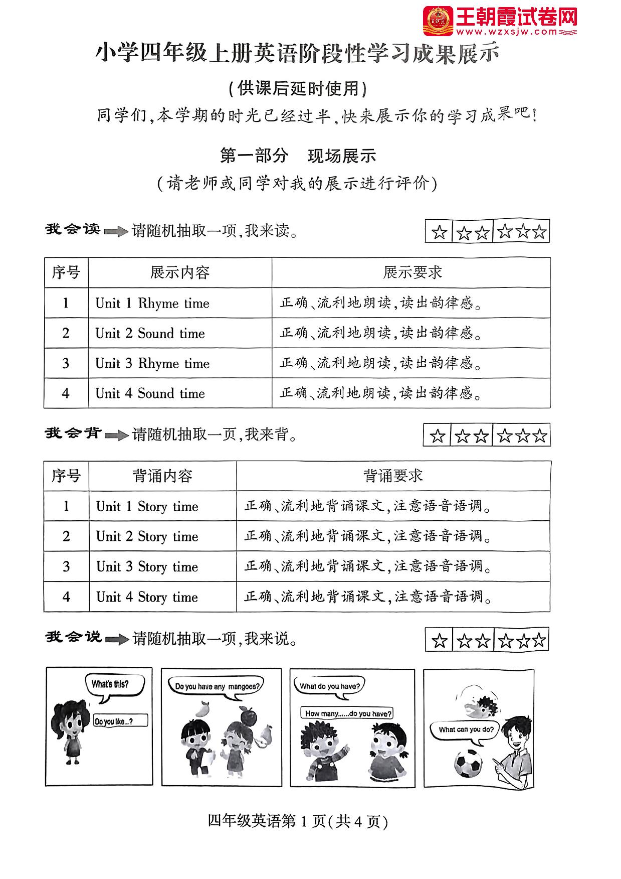 江苏省徐州市铜山区2023-2024学年上学期期中阶段性学习成果展示四年级英语(译林版)