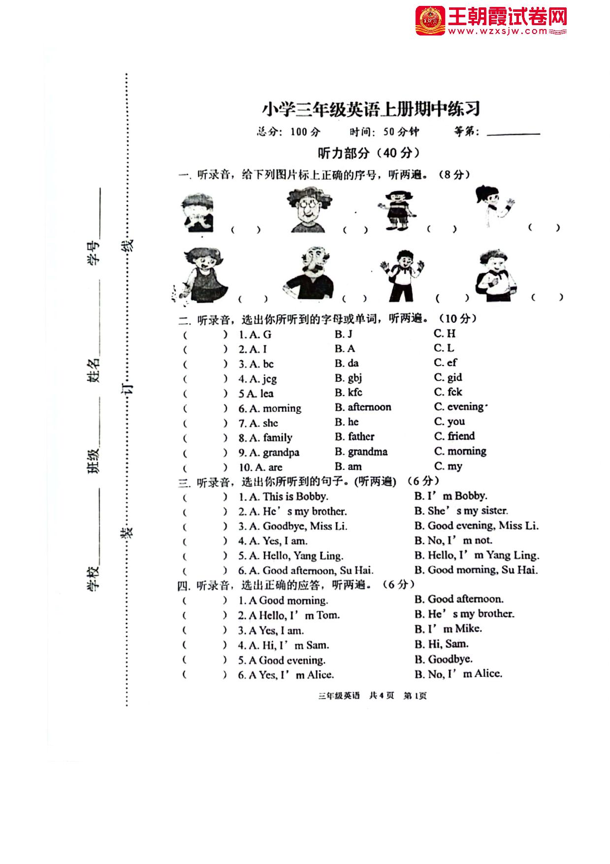 江苏省淮安市金湖县实验小学2023-2024学年上学期期中练习三年级英语(译林版)【无听力音频】