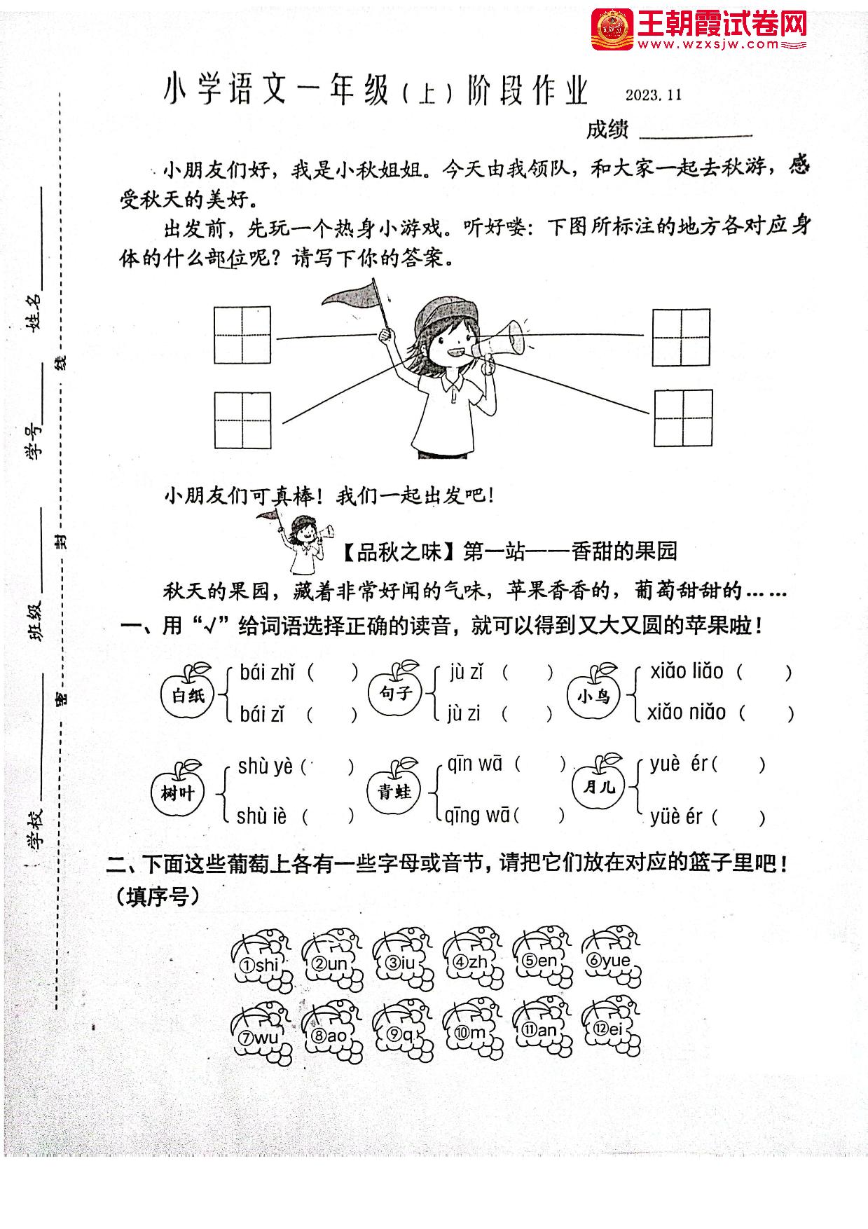江苏省泰州市兴化市2023-2024学年上学期期中阶段作业一年级语文(人教版)