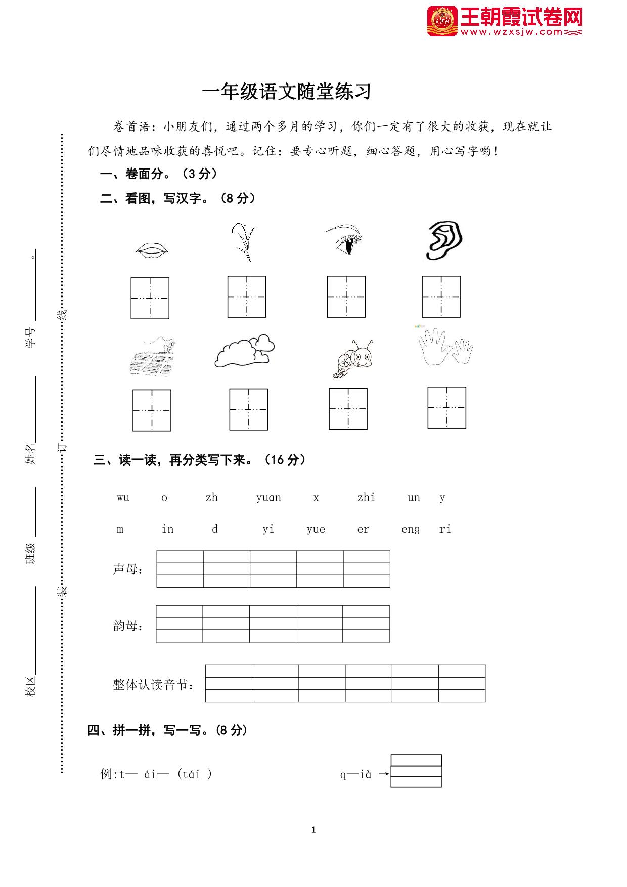 江苏省盐城市盐都区神州路小学教育集团2023-2024学年上学期11月期中试题一年级语文(人教版)