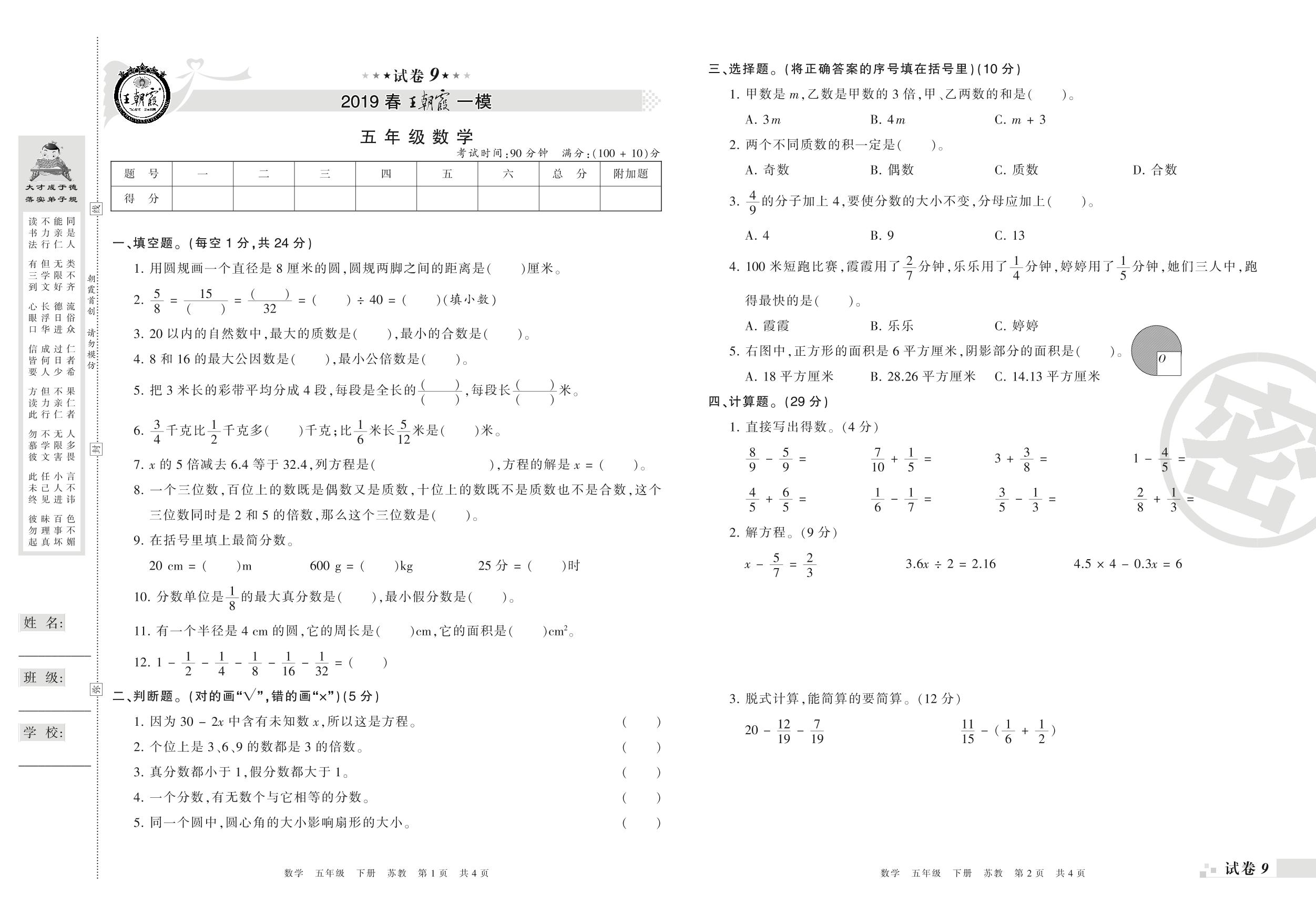 王朝霞期末模拟卷五年级下册数学(苏教版)_R210804172123【9】